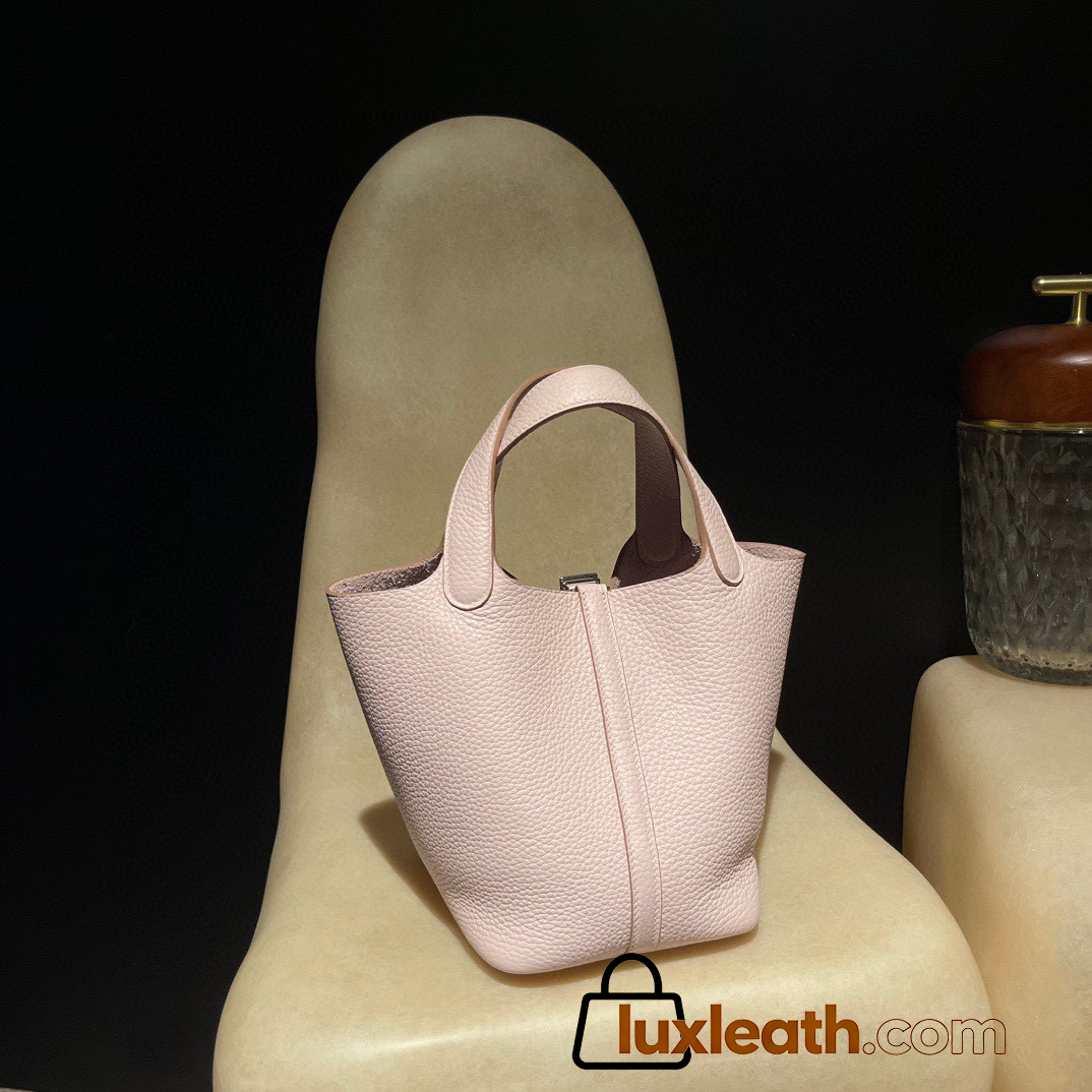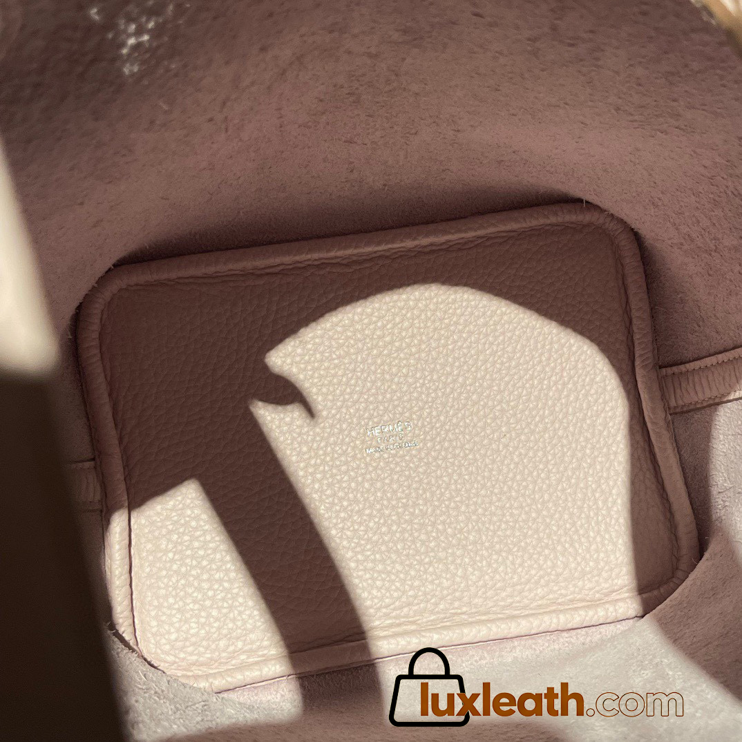 Picotin Lock 18/PM Taurillon Clemence (TC) 09 Mauve Pale 2023 (New Color Launched in Hermes 2022 AW) Silver Hardware Fully Hand-Stitched