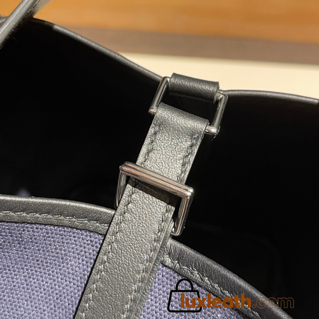 Hermes Picotin  Swift & canvas cargo 18cm 73 /Blue Saphir & 89/Black Silver Hardware