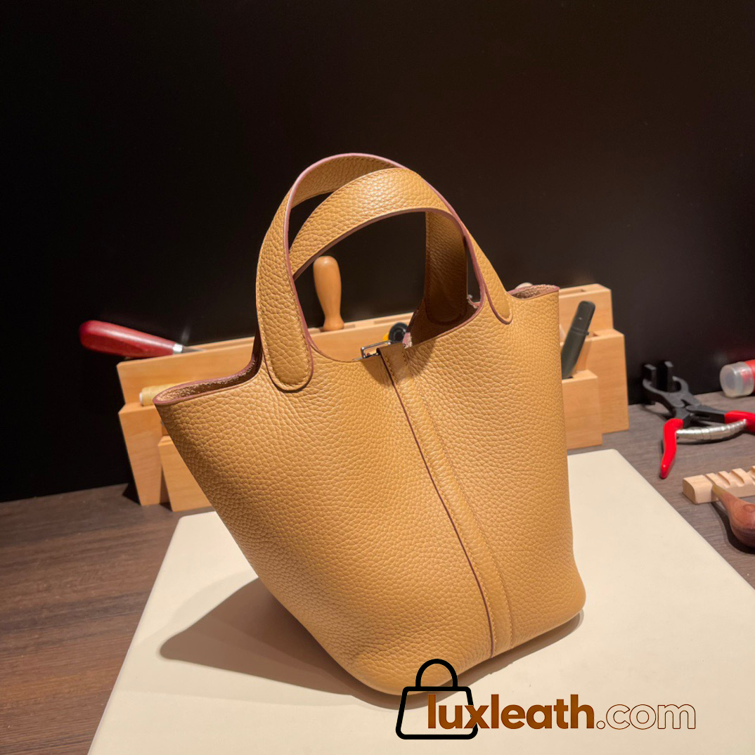 Hermes Picotin cargo Clemence 18cm 4B /Biscuit Silver Hardware