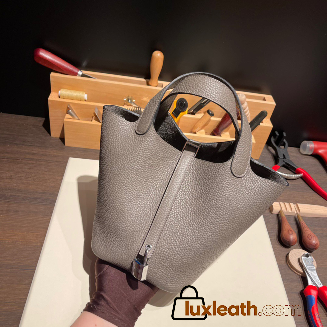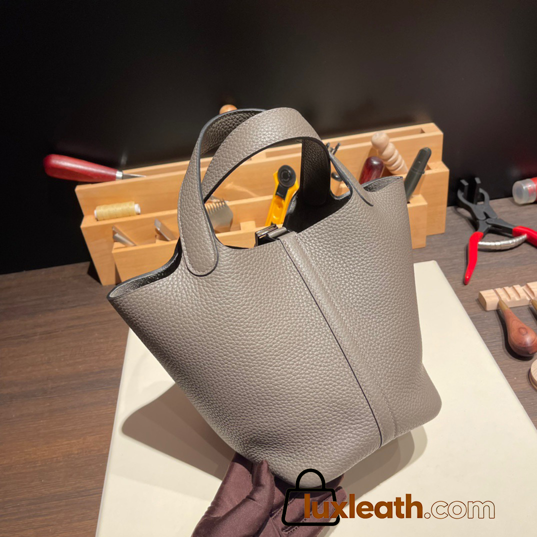 Hermes Picotin cargo Clemence 18cm 8F /Etain Silver Hardware