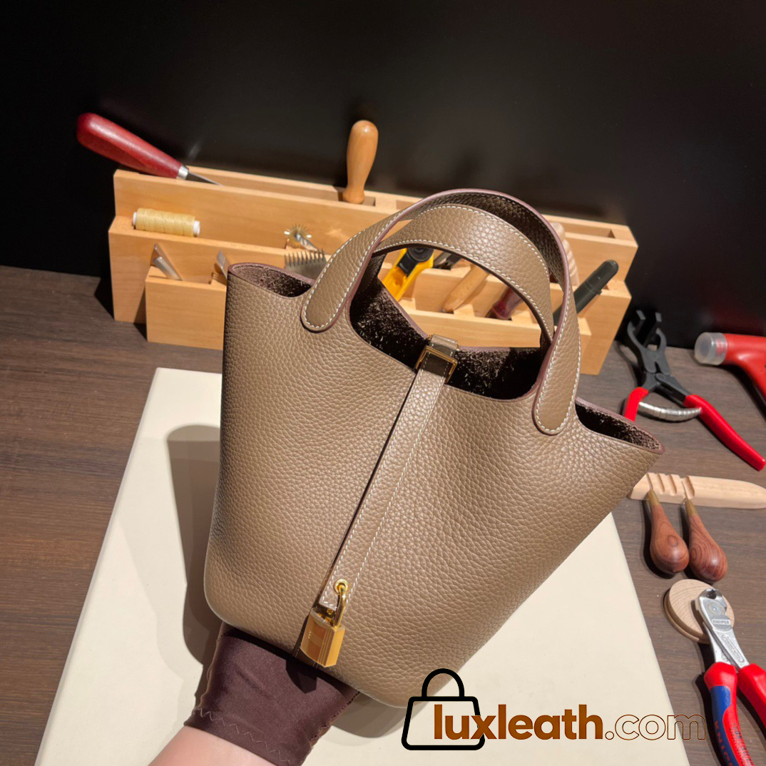 Hermes Picotin cargo Clemence 18cm 8C/ Elephant Grey Gold Hardware