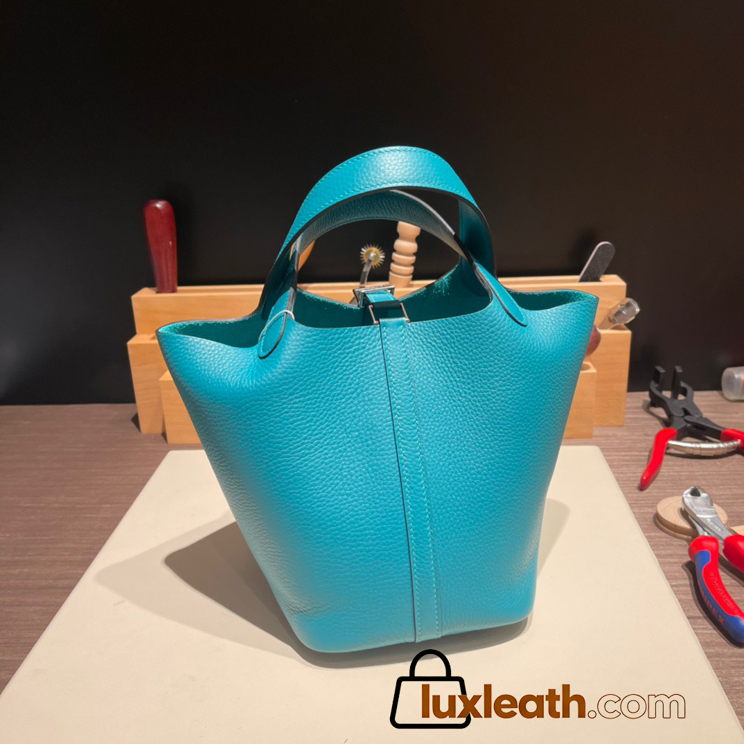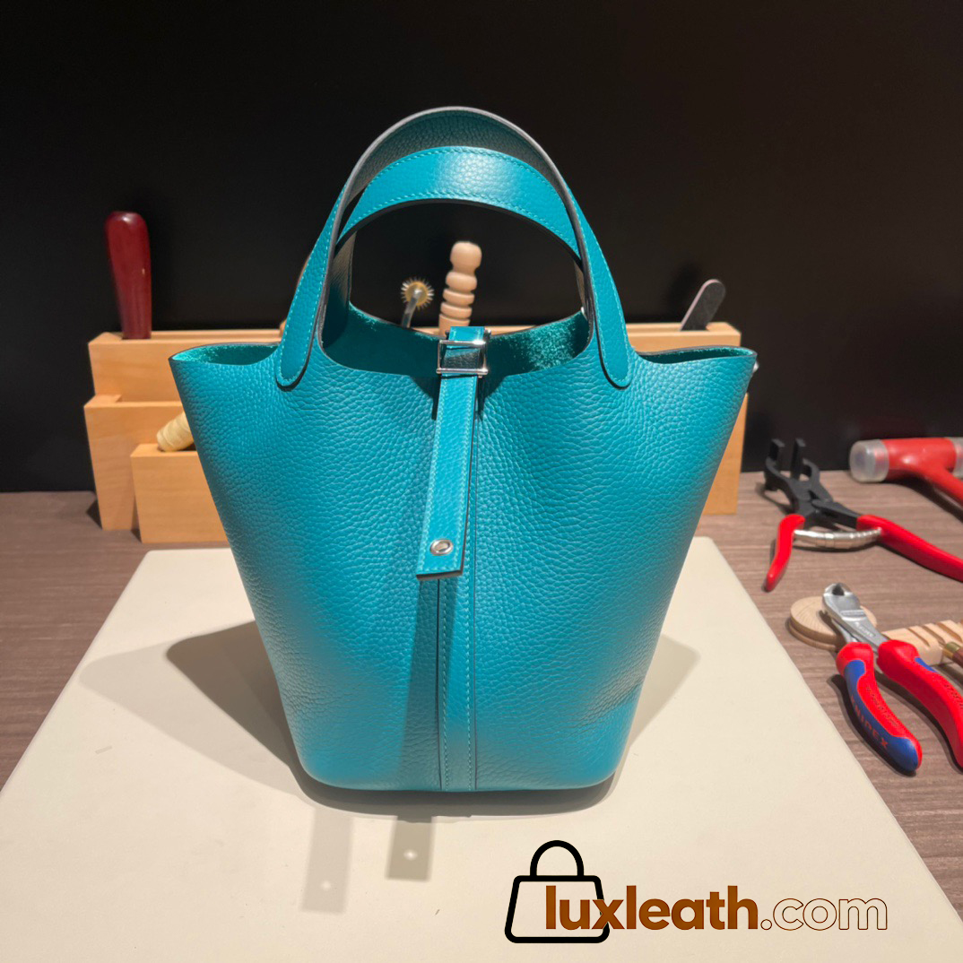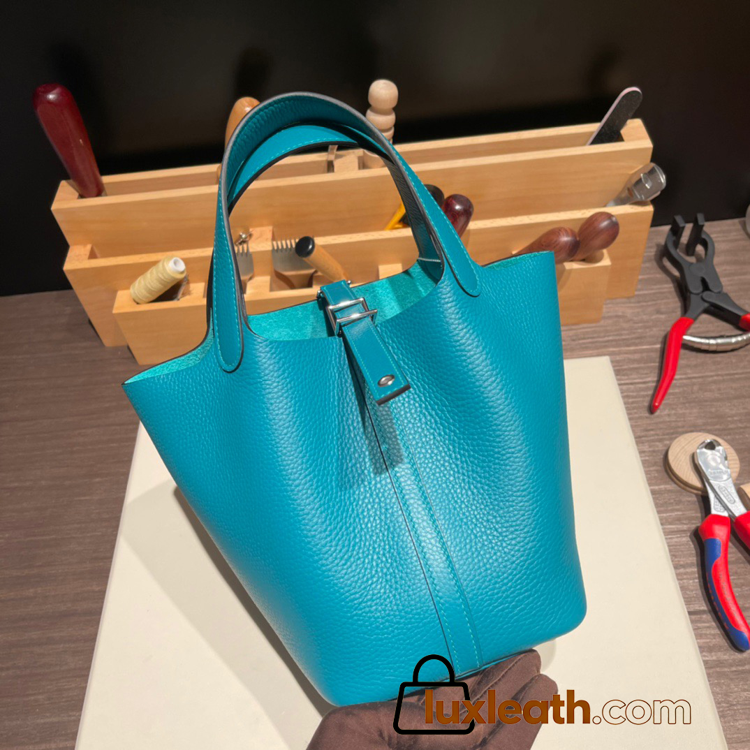 Hermes Picotin Clemence 18cm 7F /Blue Paon Silver Hardware