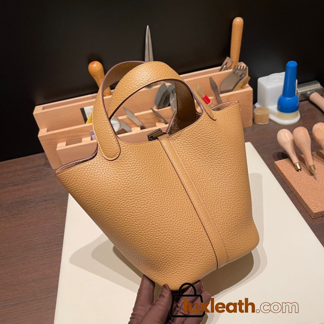 Hermes Picotin Clemence 18cm 4B /Biscuit Silver Hardware