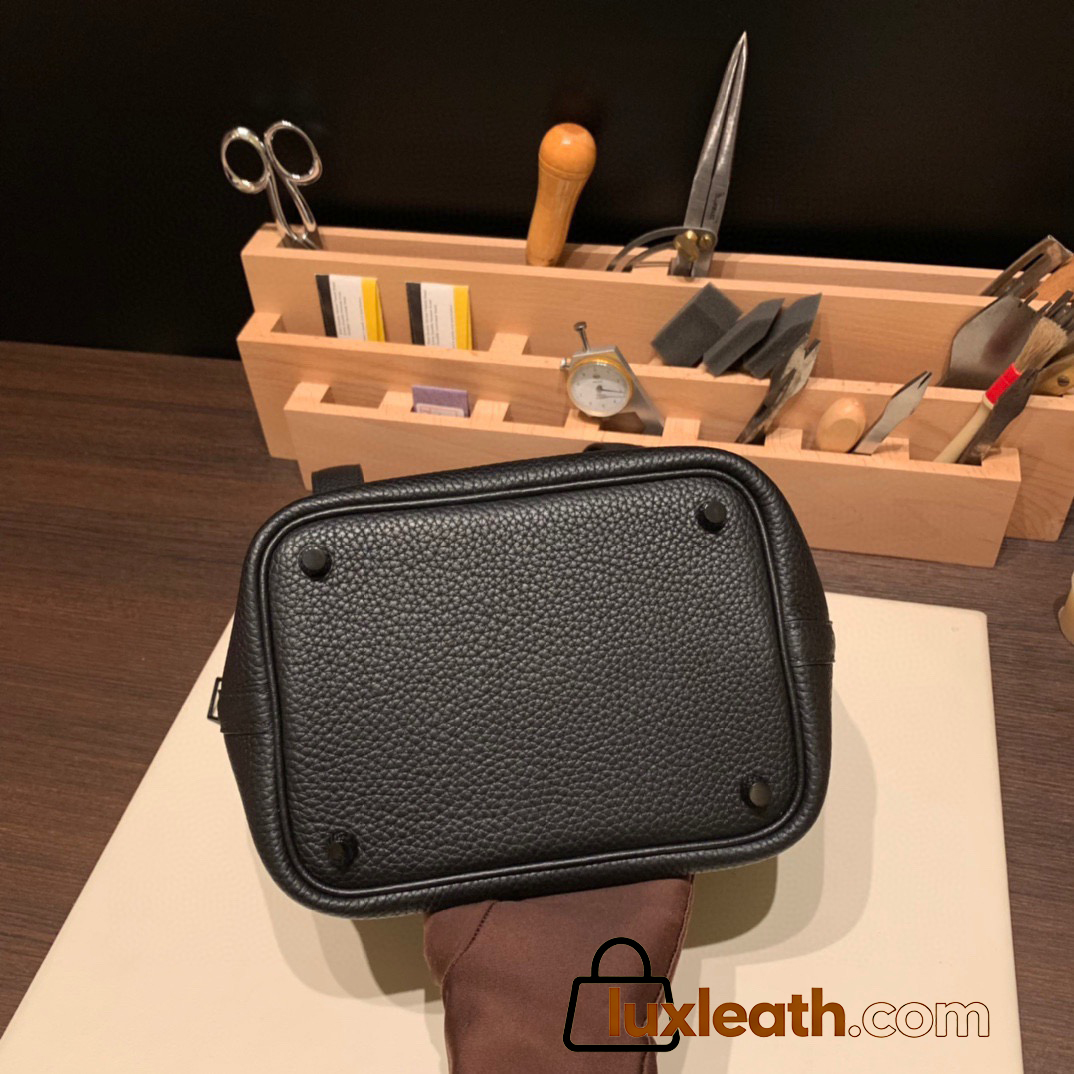 Hermes Picotin Clemence 18cm 89 /Black (Noir) Black Hardware