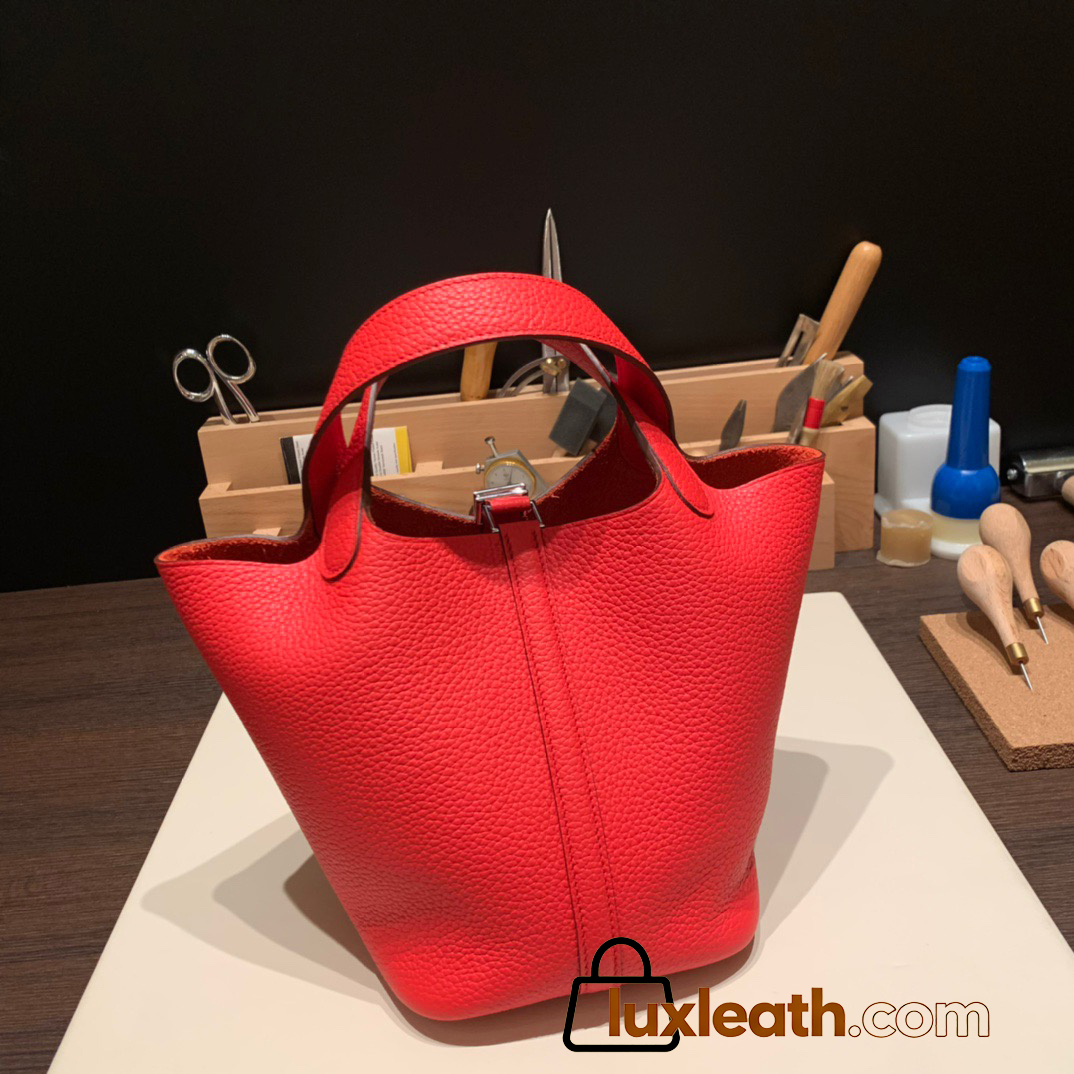 Hermes Picotin Clemence 18cm S3 /Rouge Cœur Silver Hardware