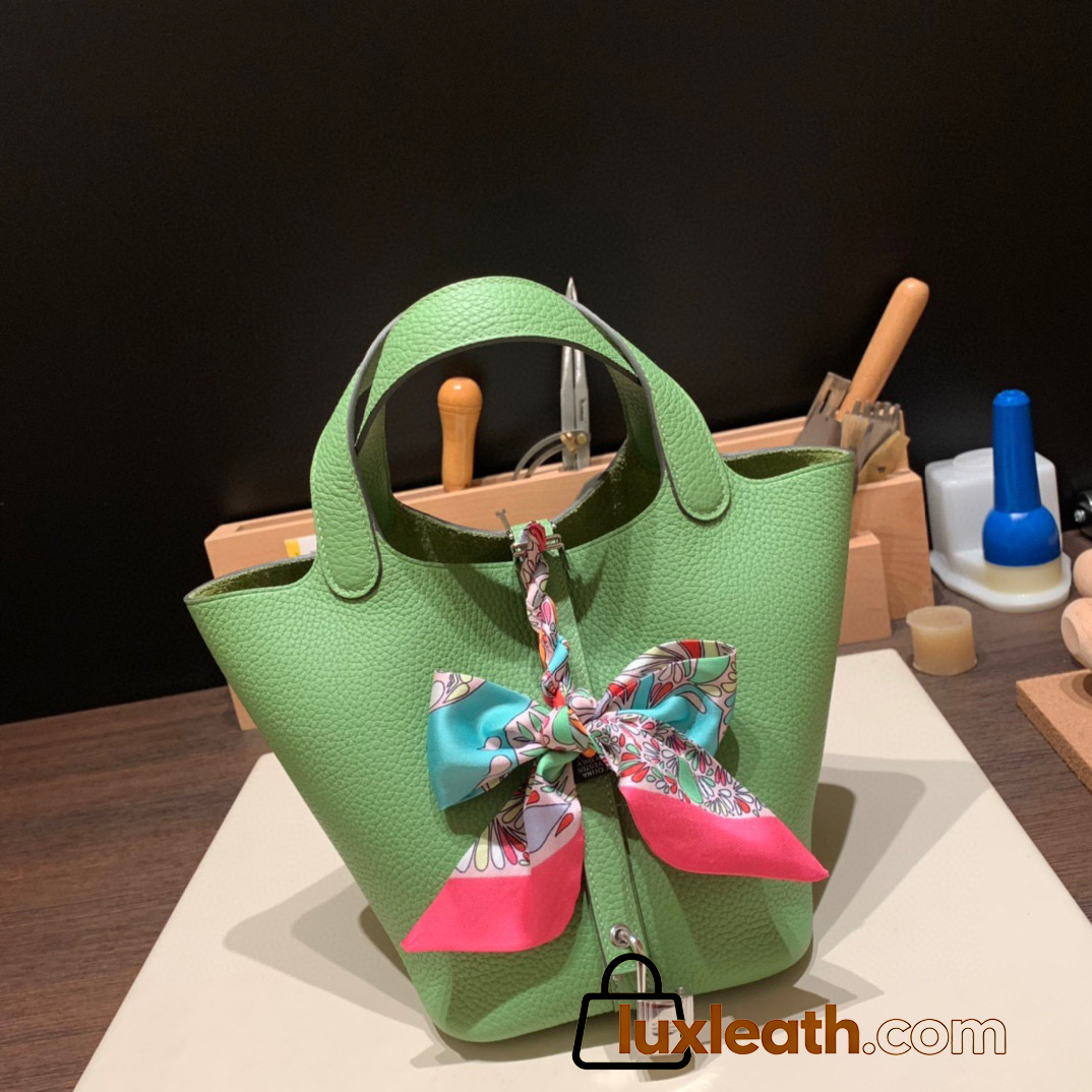 Hermes Picotin Clemence 18cm 3I/Vert Criquet Silver Hardware