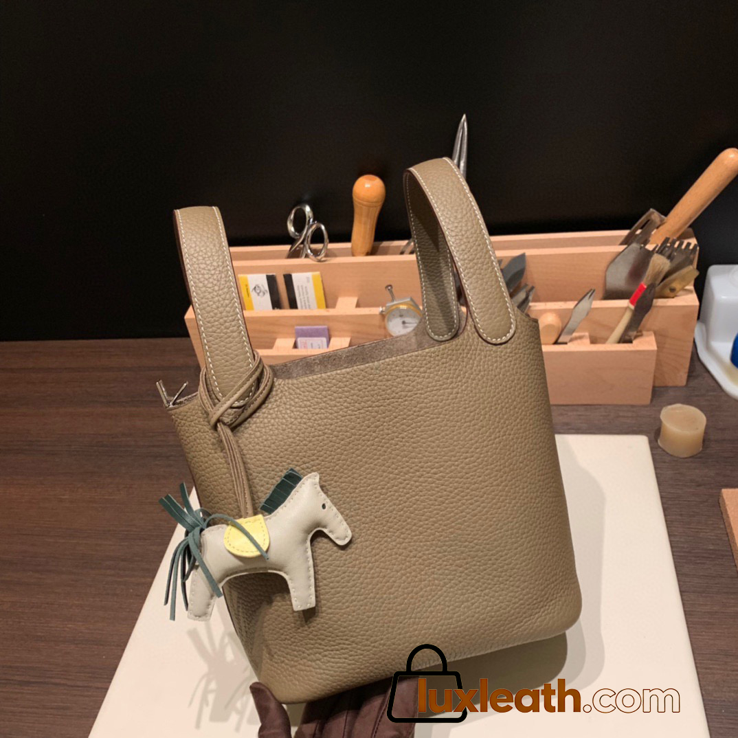 Hermes Picotin Clemence 18cm 18 /Étoupe Grey Gold Hardware