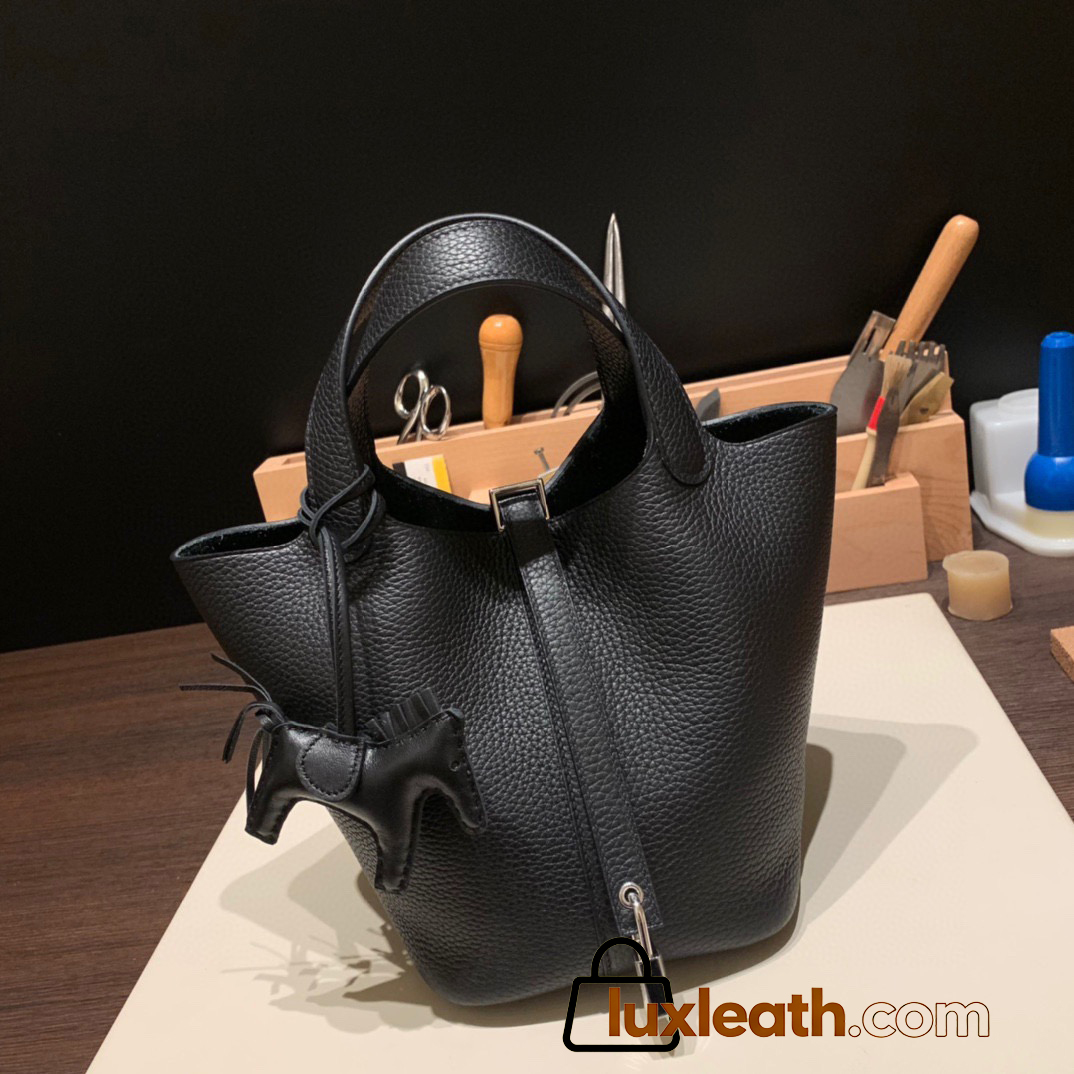 Hermes Picotin Clemence 18cm 89 /Black Silver Hardware