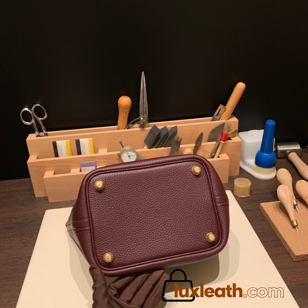 Hermes Picotin Clemence 18cm 0G/ Rouge Sellier Gold Hardware