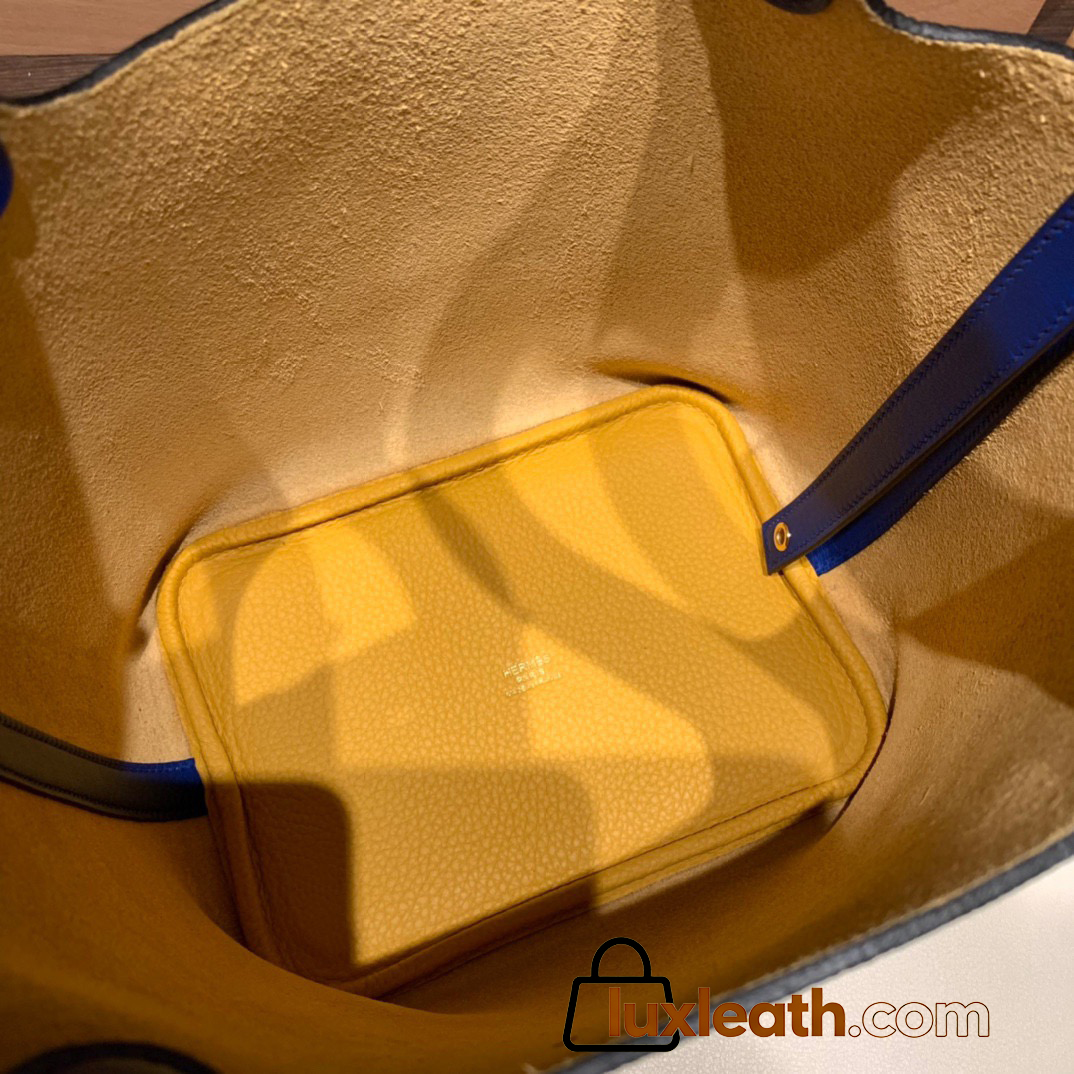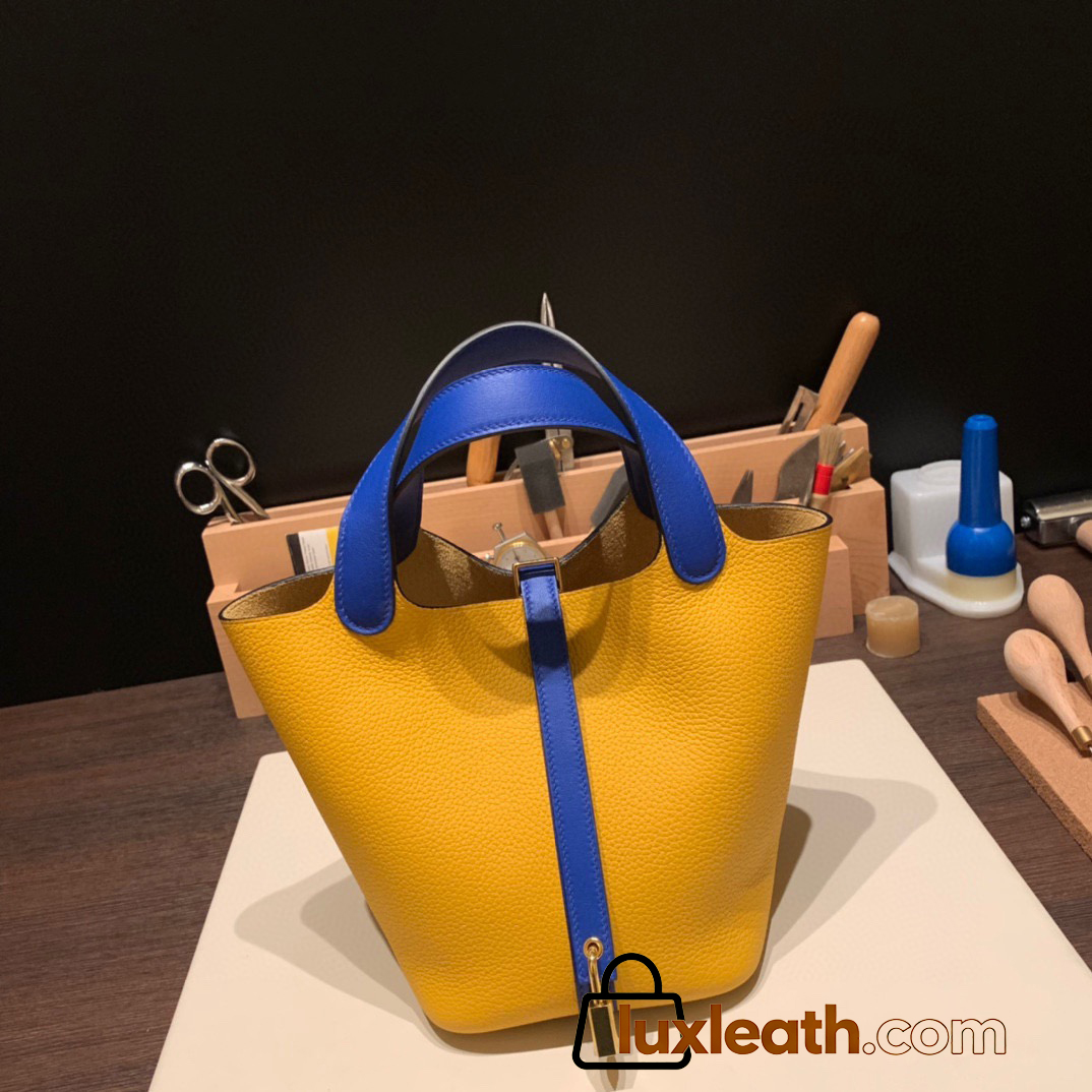 Hermes Picotin Clemence 18cm 9D Jaune Ambre & 7T /Blue Electric Silver Hardware