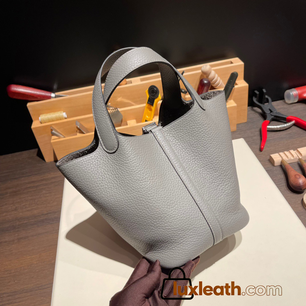 Hermes Picotin Clemence 18cm 0L/ Gris Meyer Silver Hardware