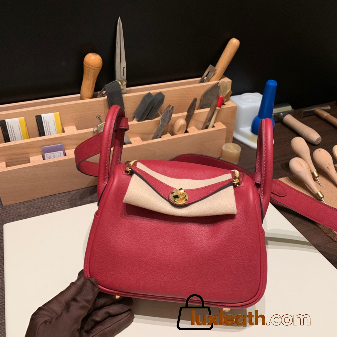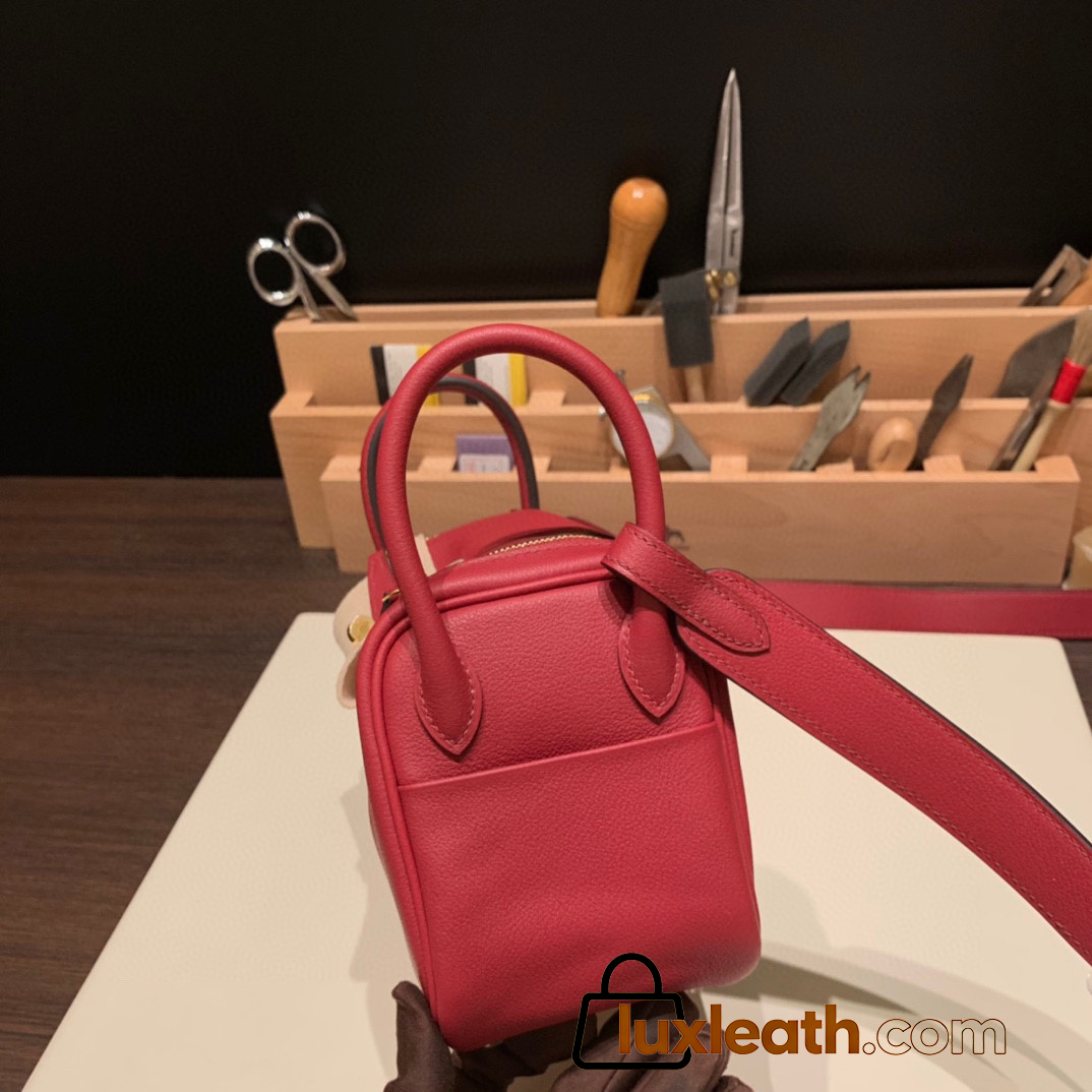 Hermes Mini Lindy Evercolor K1 / Rouge Grenat Gold Hardware 003