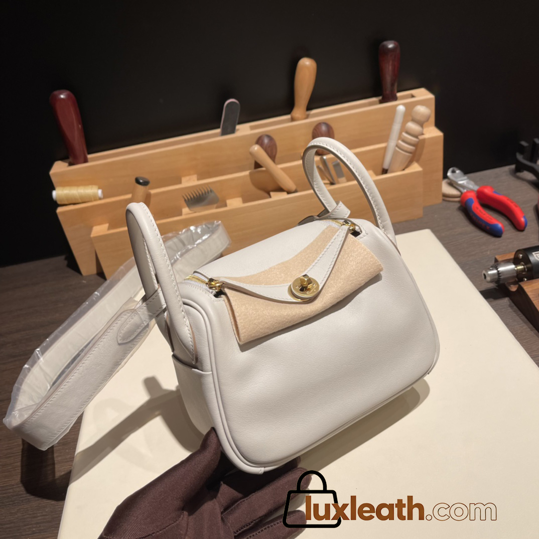 Hermes Mini Lindy swift 80 /Pearl Grey Gold Hardware 007