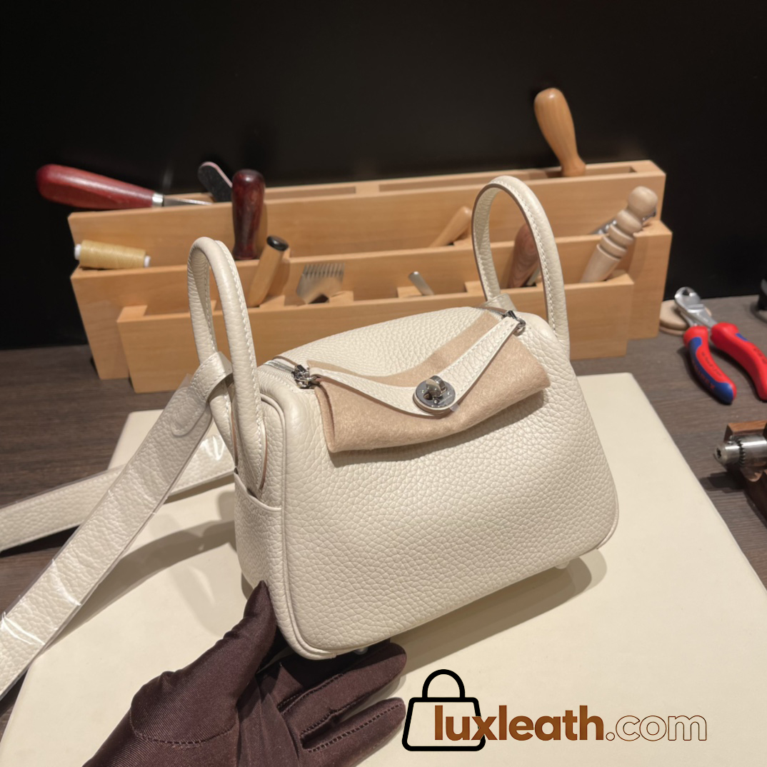 Hermes Mini Lindy Clemence10 /Craie Silver Hardware 035