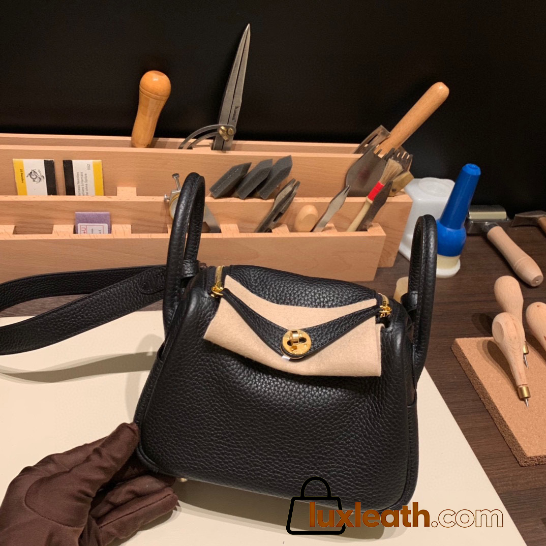 Hermes Mini Lindy Clemence 89 /Black Gold Hardware 050
