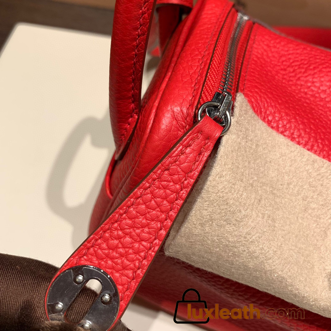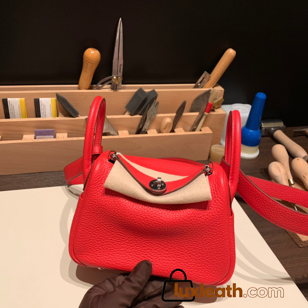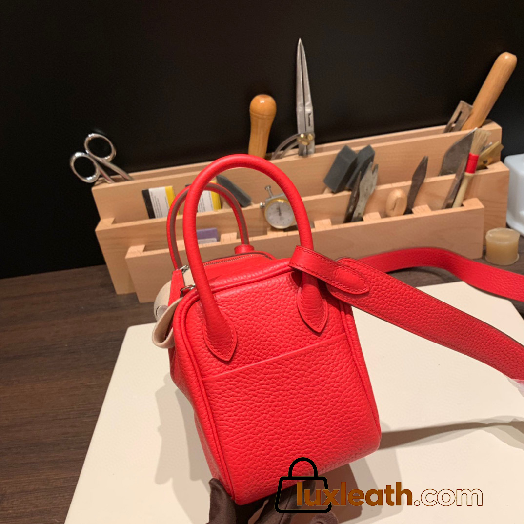 Hermes Mini Lindy Clemence S3/Rouge Cœur Silver Hardware 076