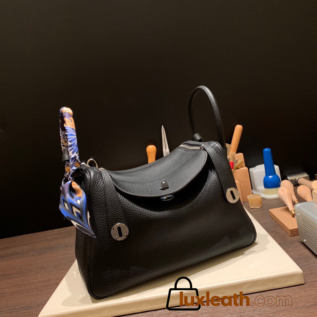 Hermes stock 30cm Lindy Clemence 89 /Black (Noir) Silver Hardware