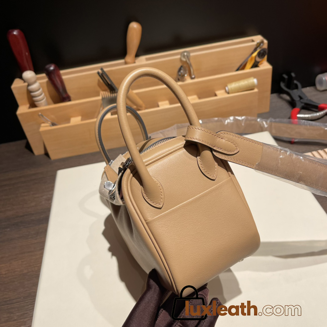 Hermes Mini Lindy swift 0M/Chai & X9 /Mauve Sylvestre Silver Hardware 012