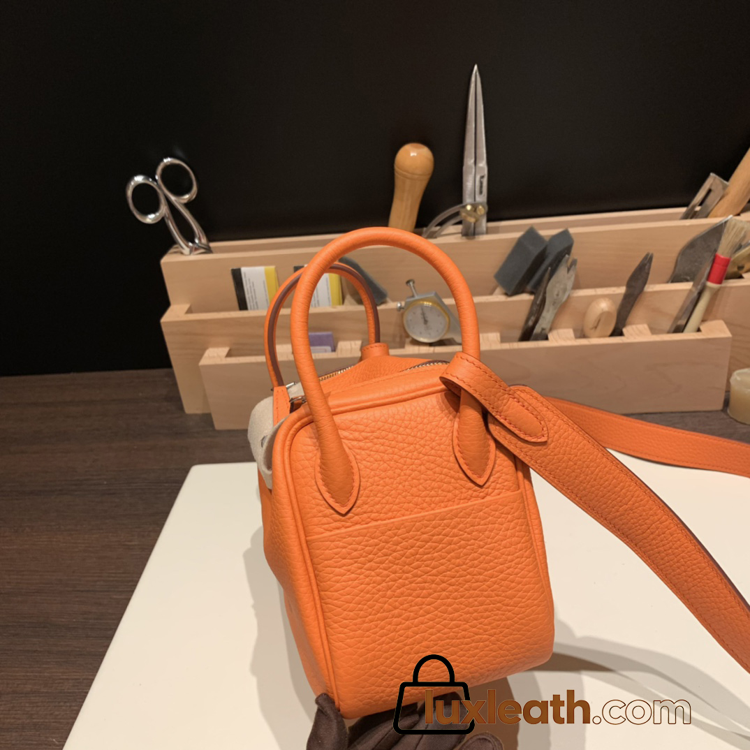 Hermes Mini Lindy Clemence S3/Rouge Cœur Silver Hardware 077