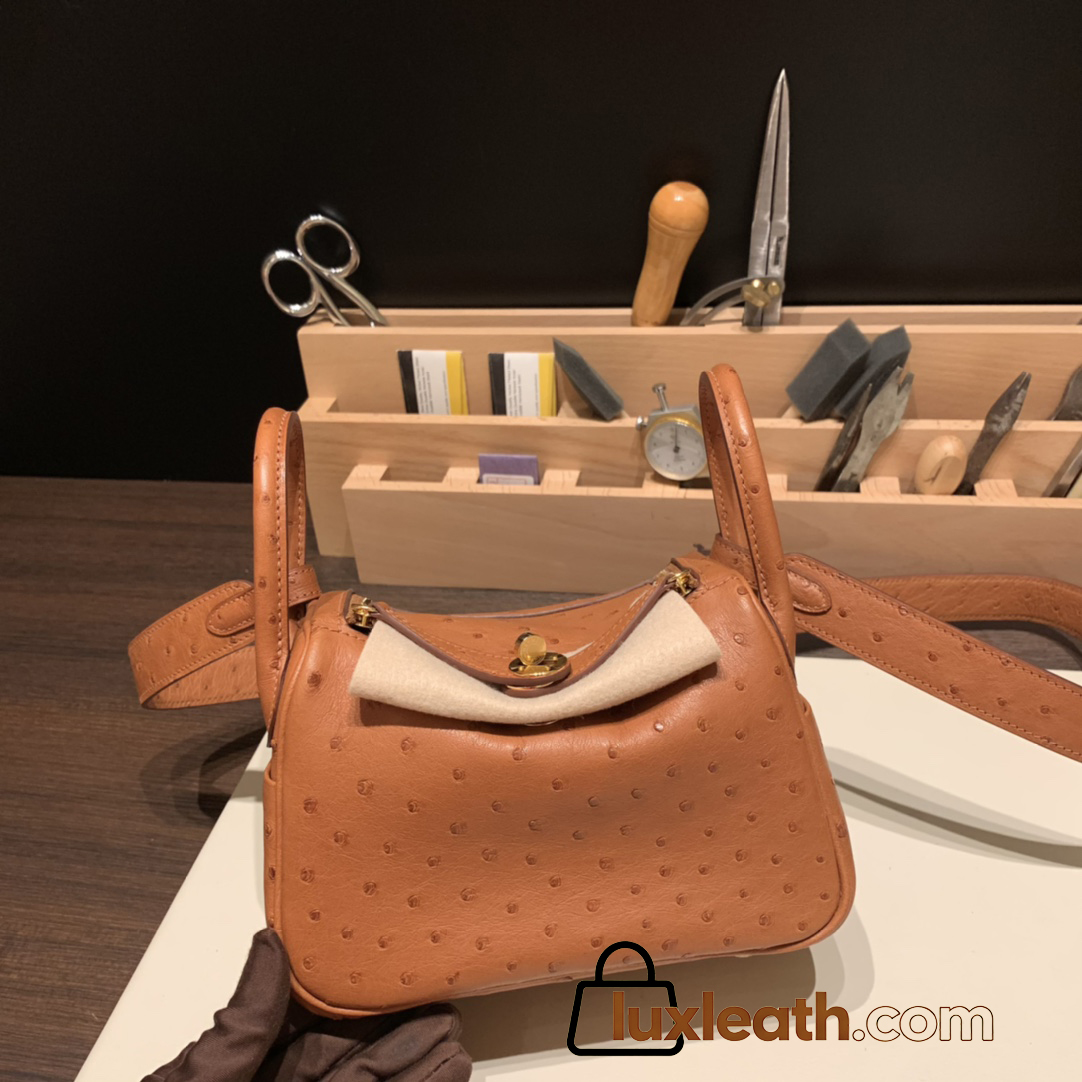 Hermes Mini Lindy Ostrich 37 /Gold Gold Hardware 002
