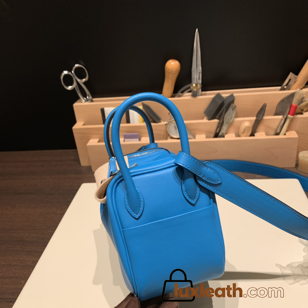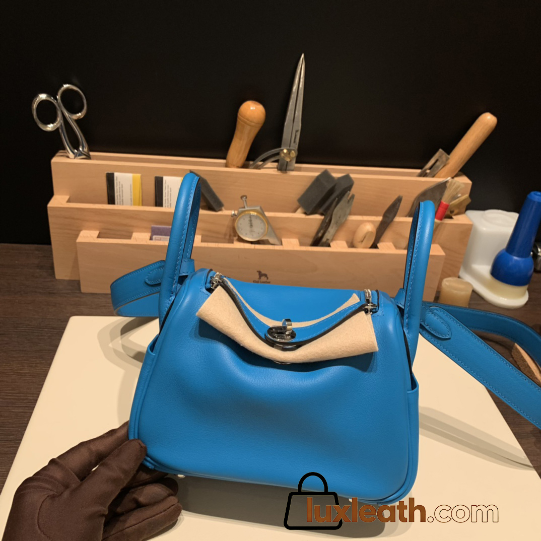 Hermes Mini Lindy 0F/ Blue Frida 0F /Blue Frida Silver Hardware 015