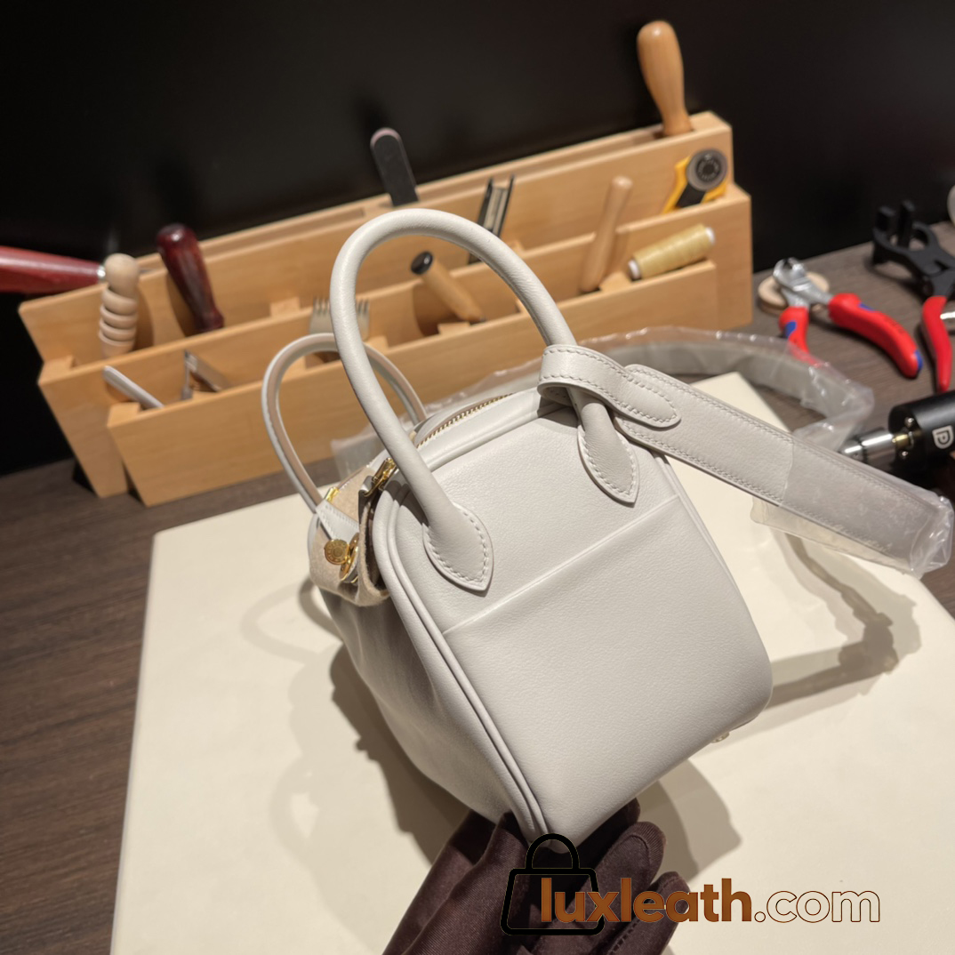 Hermes Mini Lindy 80 /Pearl Grey (Gris Perle) Gold Hardware 021