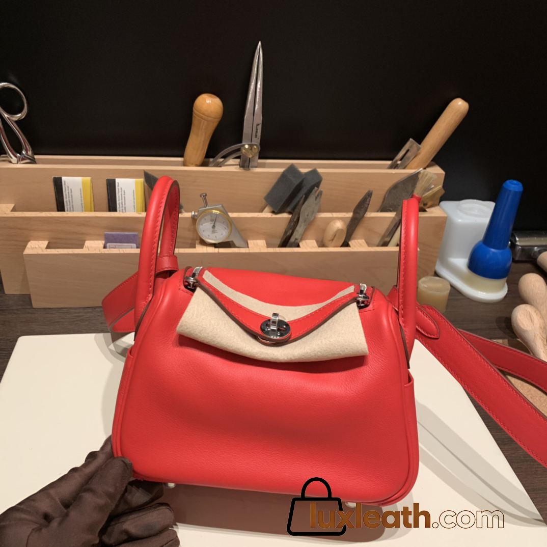 Hermes Mini Lindy S3/Rouge Cœur Silver Hardware 024