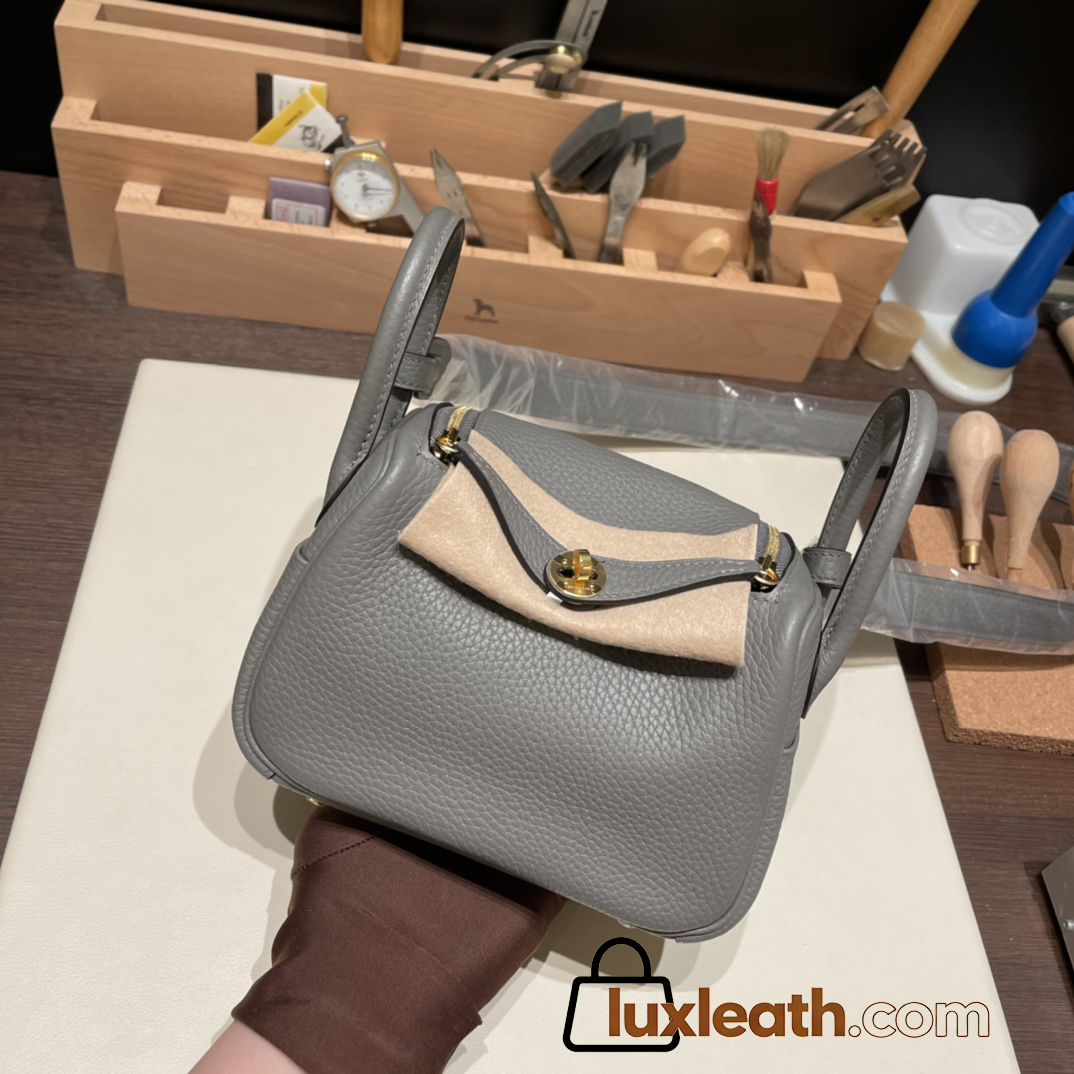 Hermes Mini Lindy Clemence 0L/ Gris Meyer Gold Hardware 059