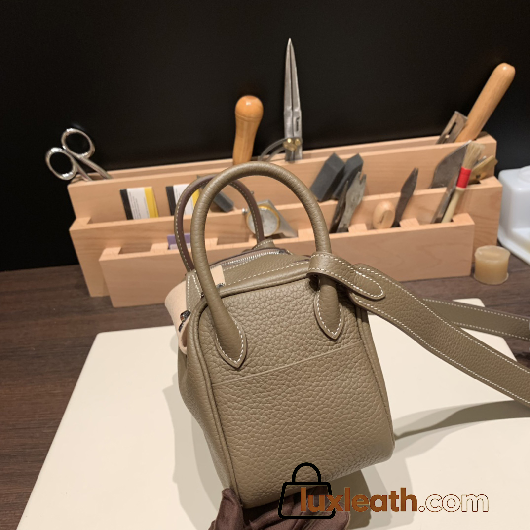 Hermes Mini Lindy Clemence 18/Étoupe Grey Silver Hardware 092