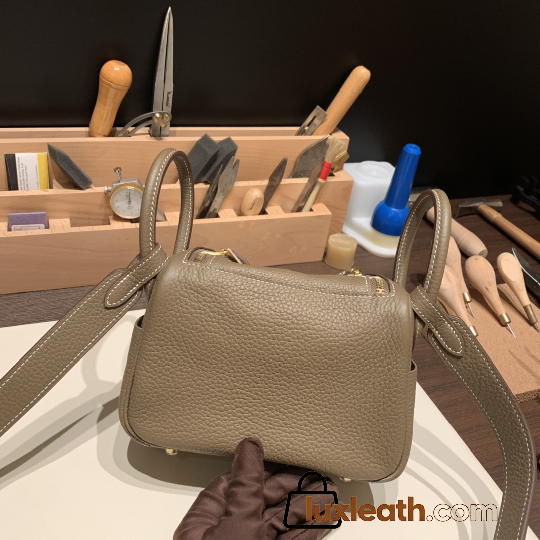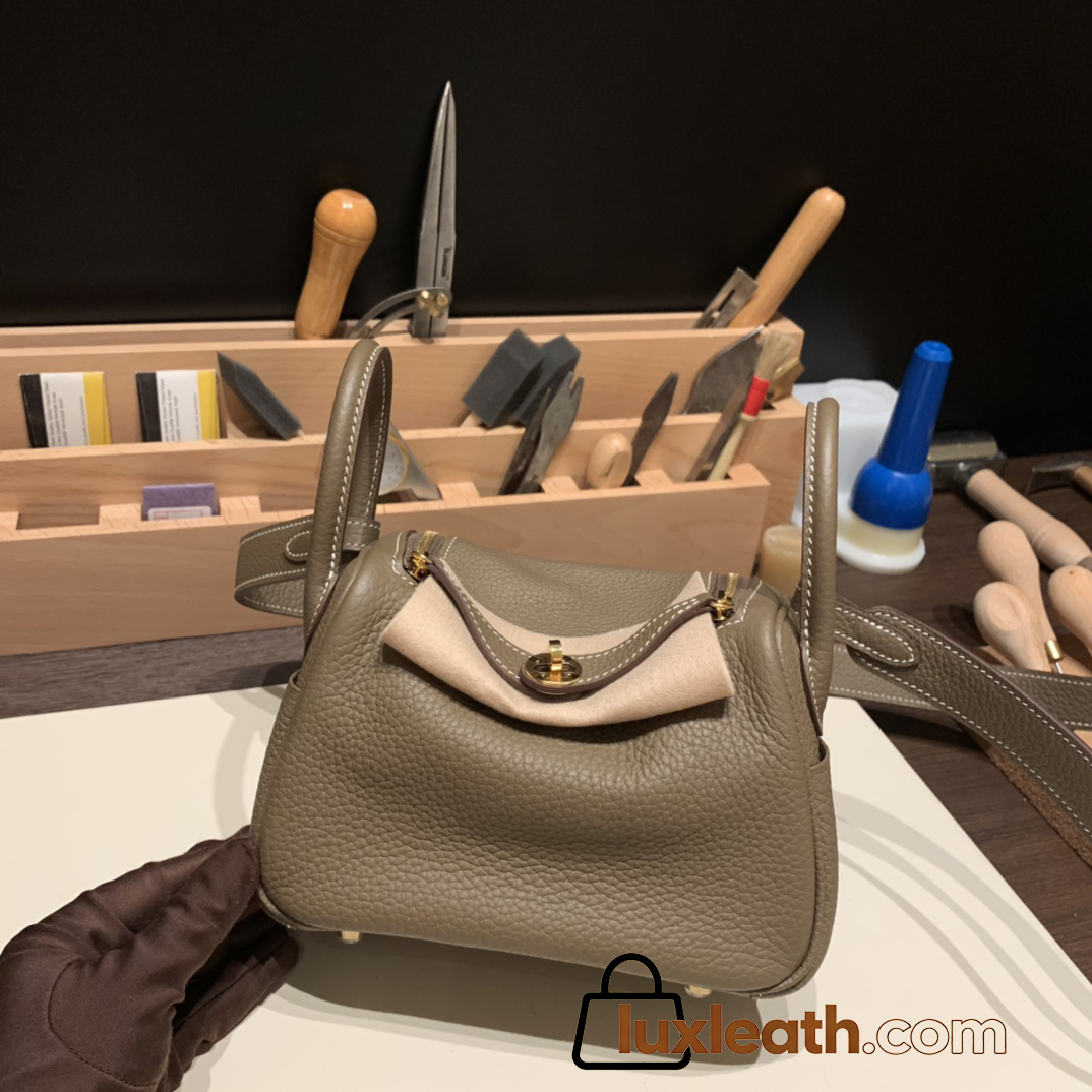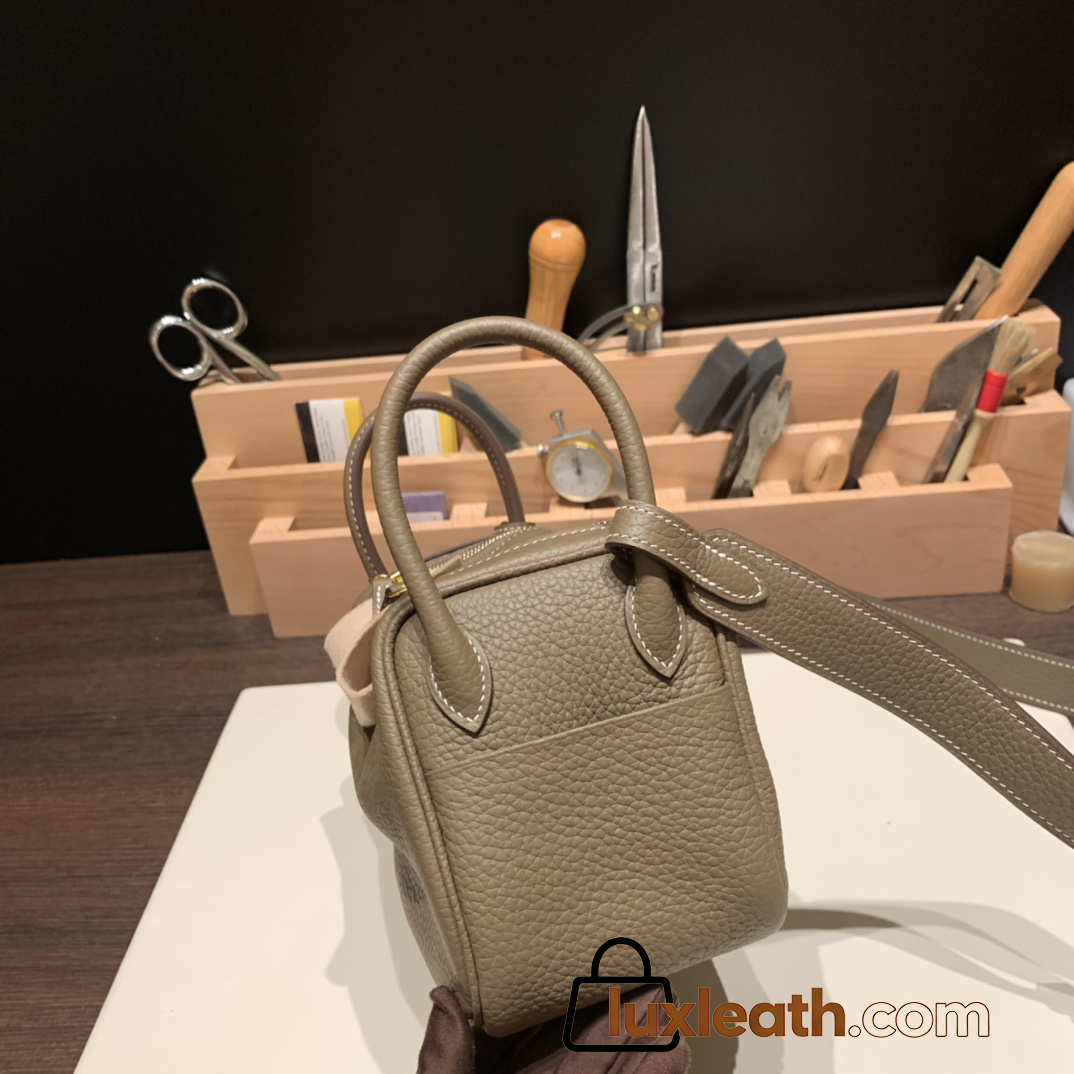 Hermes Mini Lindy Clemence 18/Étoupe Grey Gold Hardware 093