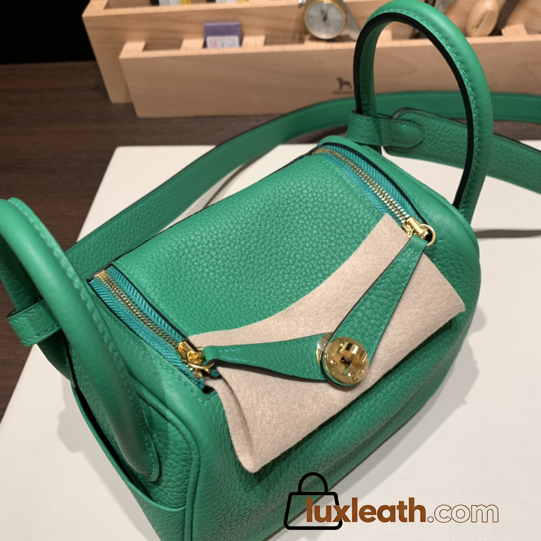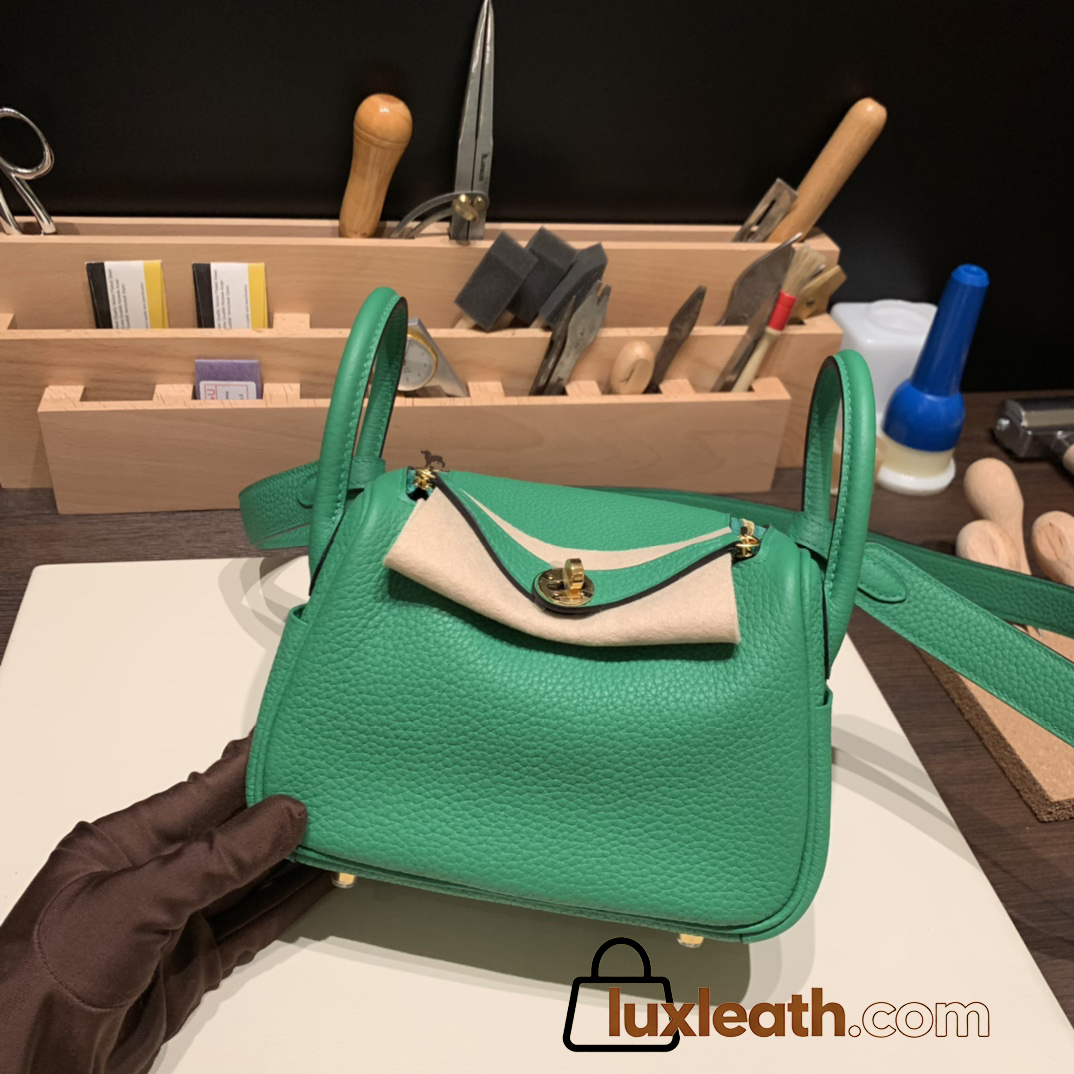 Hermes Mini Lindy Clemence 1K /Bambou Gold Hardware 095