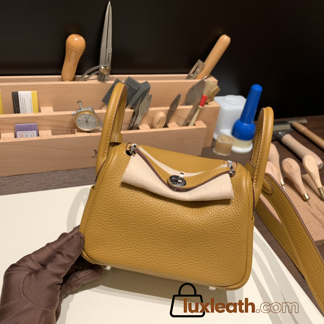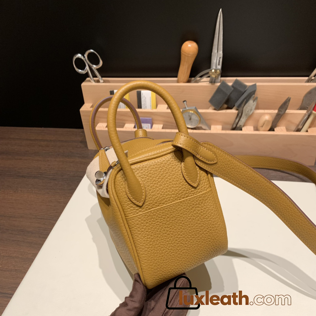 Hermes Mini Lindy Clemence 2S /Sesame Silver Hardware 096