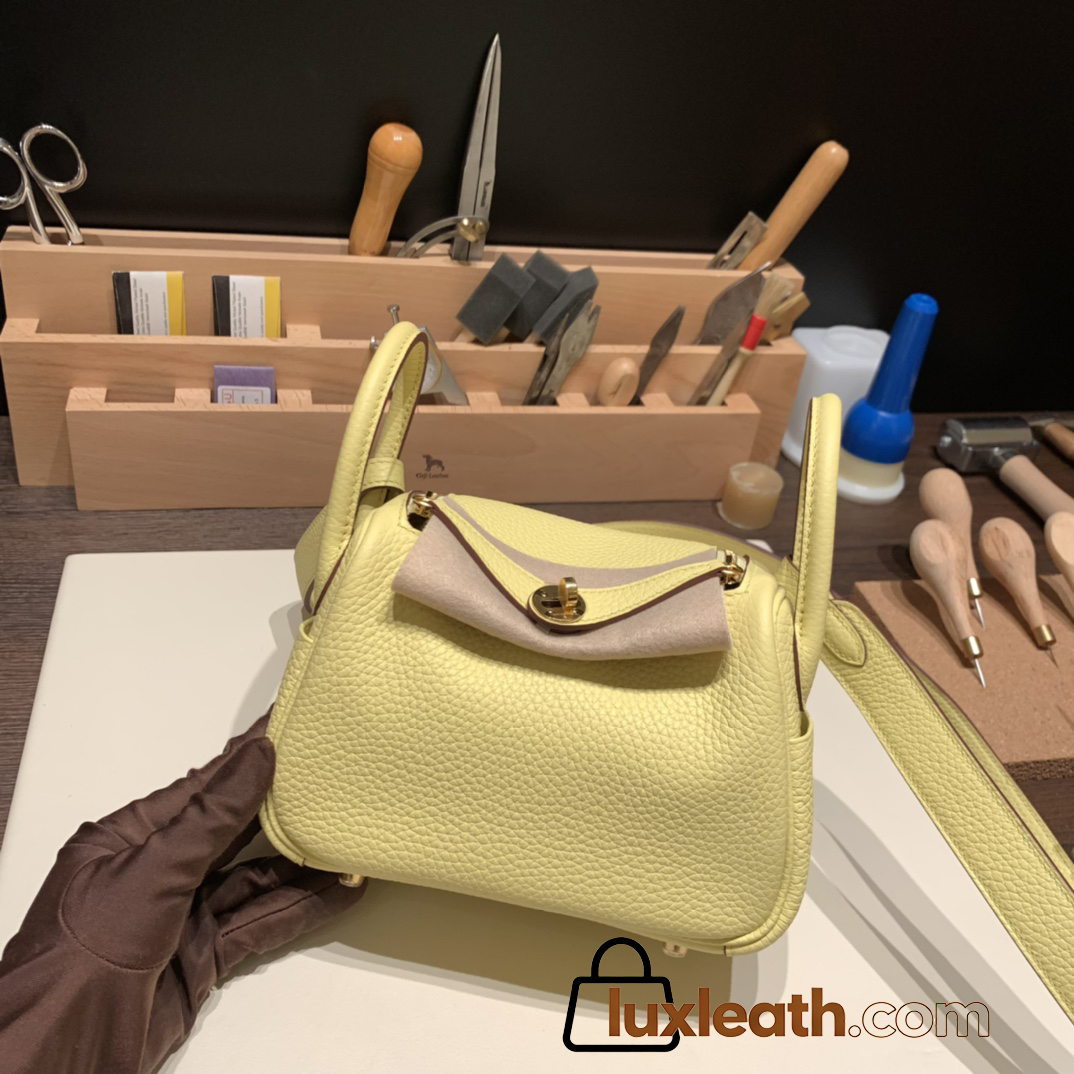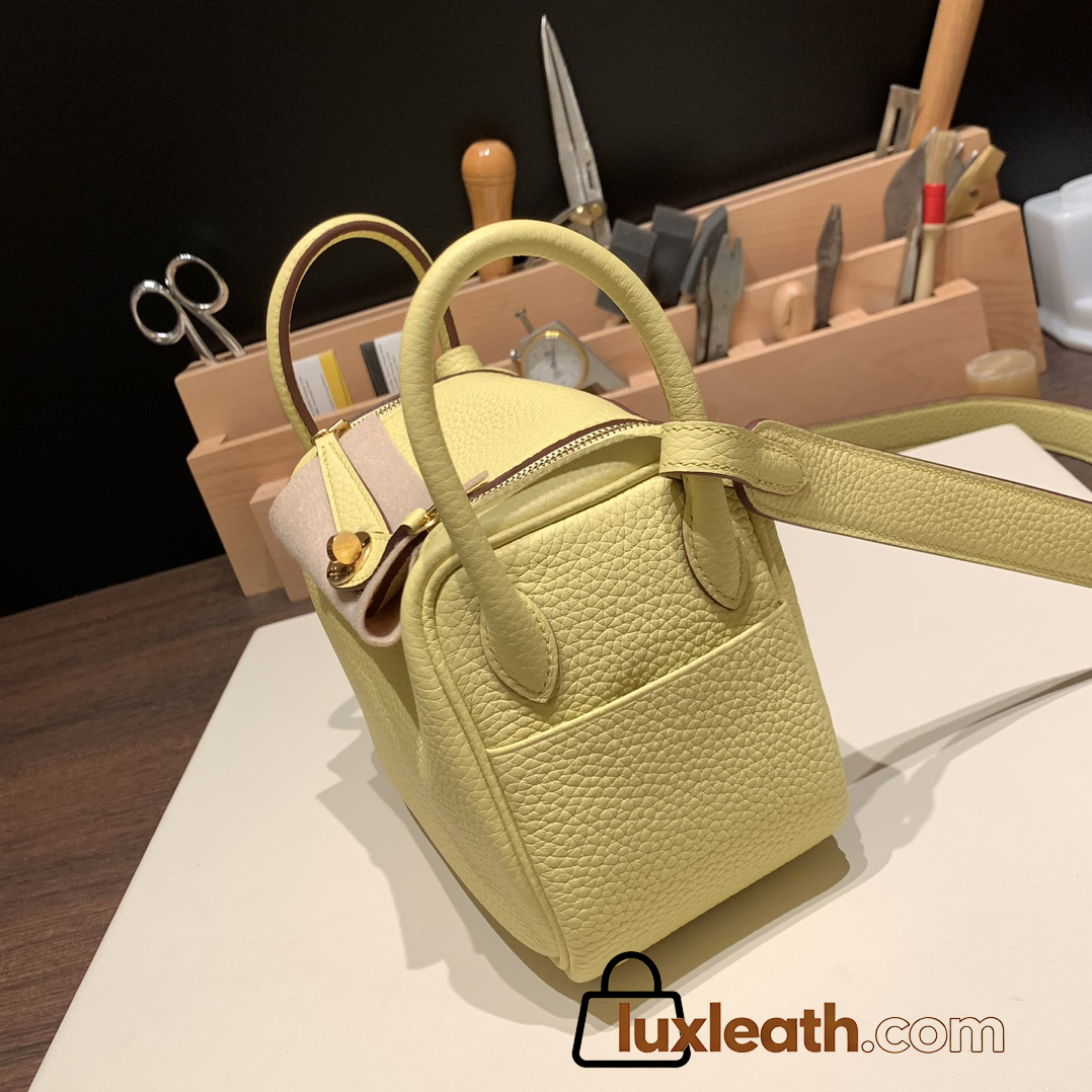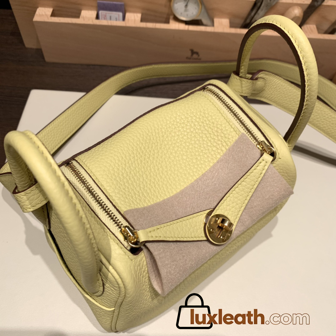 Hermes Mini Lindy Clemence 1Z /Jaune Poussin Gold Hardware 100