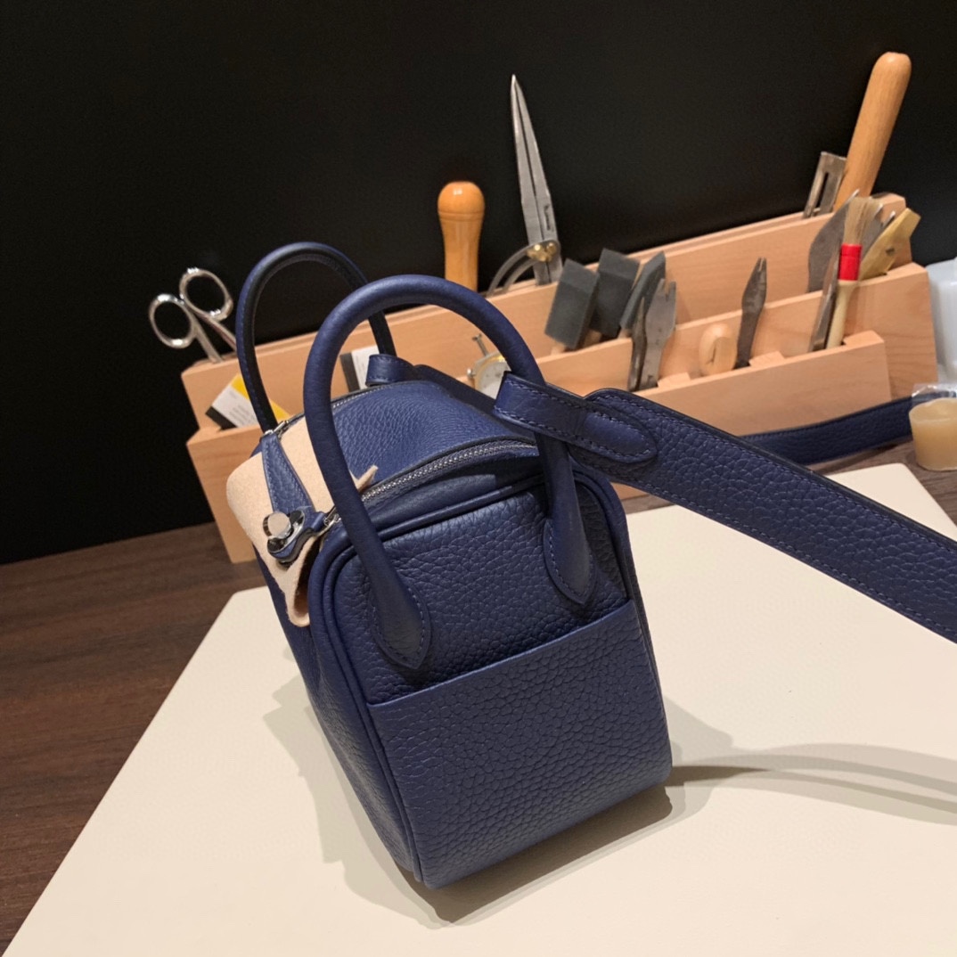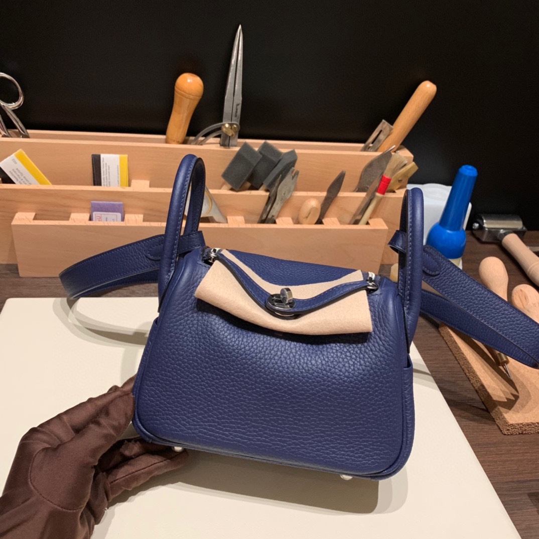 Hermes Mini Lindy Clemence 73 /Blue Saphir Silver Hardware 102
