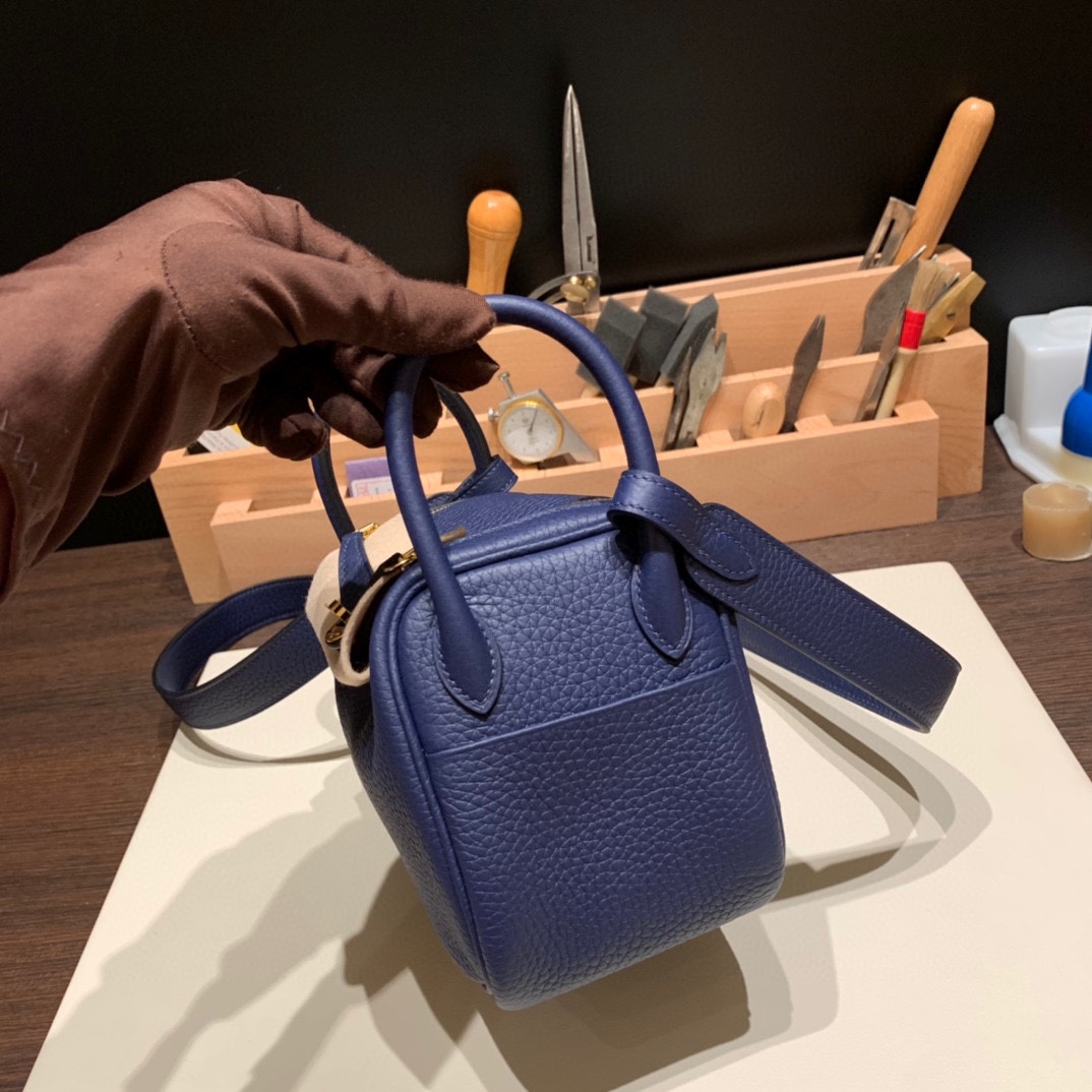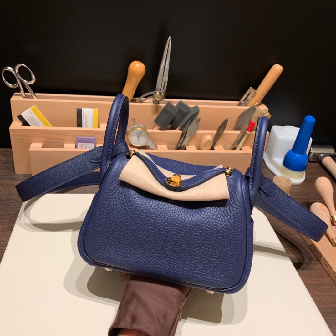 Hermes Mini Lindy Clemence 73 /Blue Saphir Gold Hardware 103