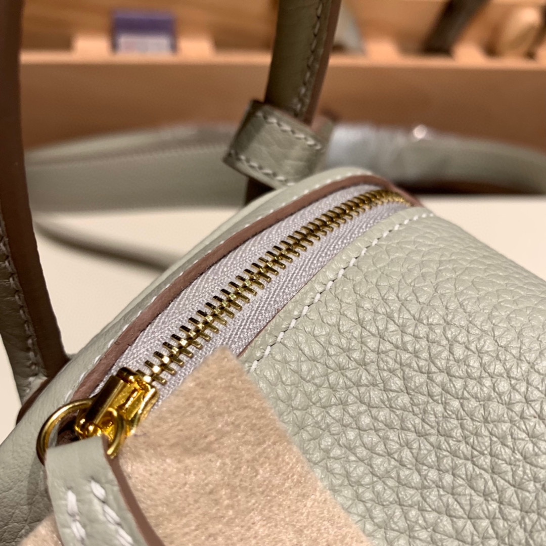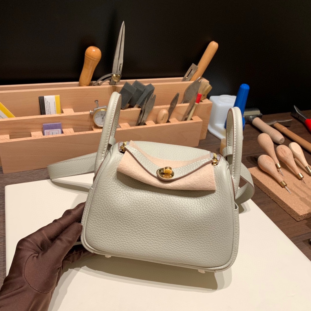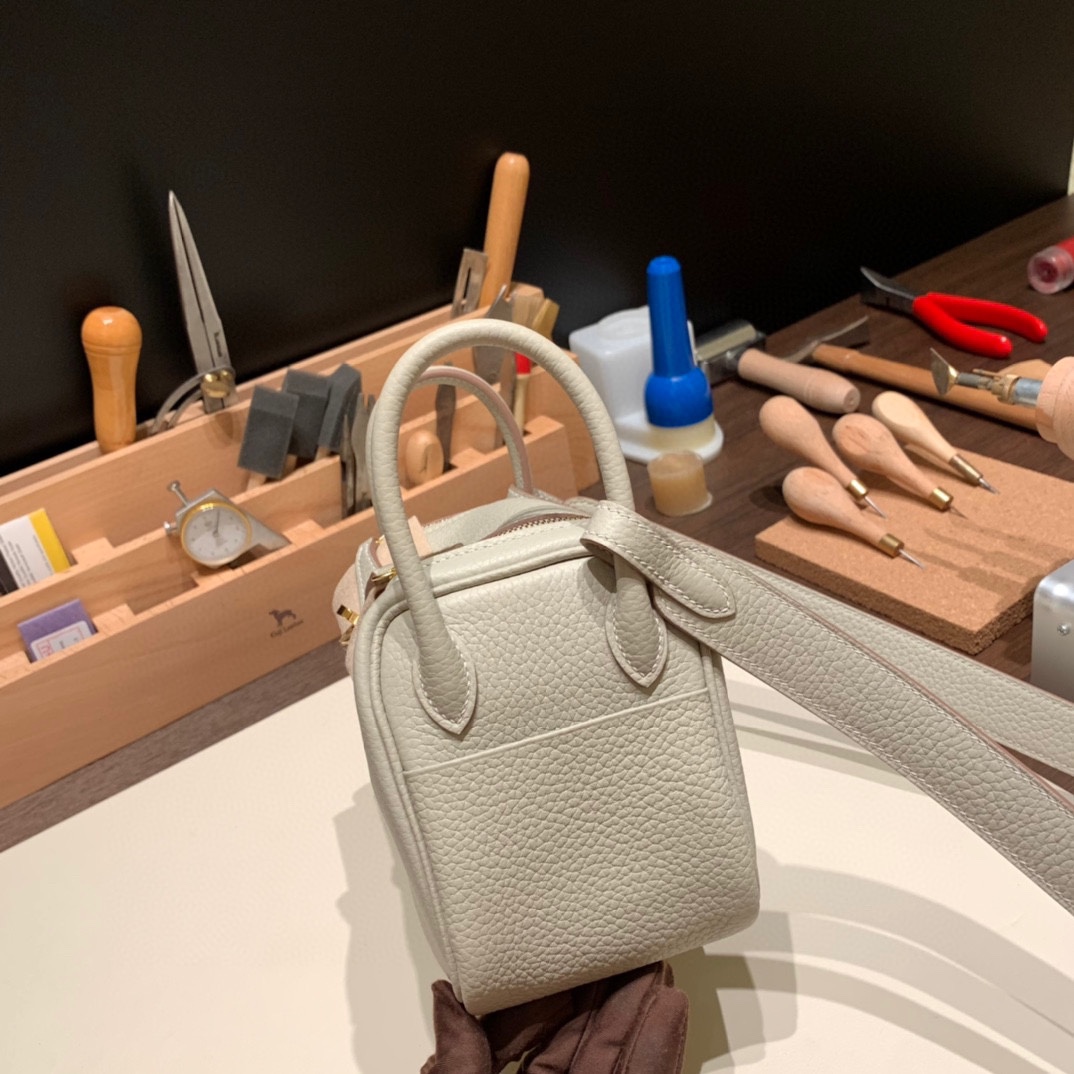 Hermes Mini Lindy Clemence 80 / Pearl Grey Gold Hardware 108
