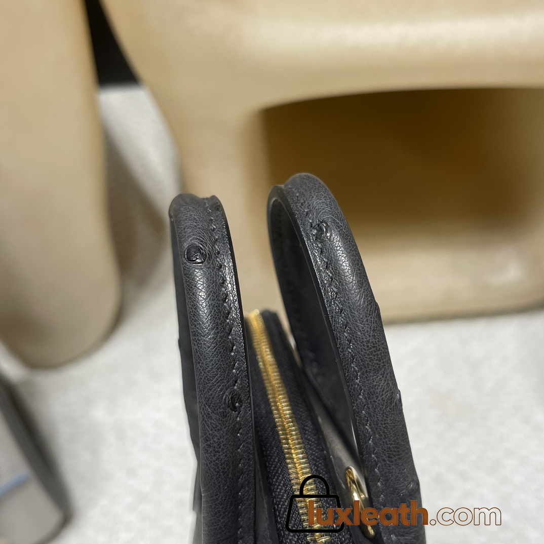 【NEW】Mini Bolide 18cm Ostrich 89 / Black Gold Hardware Full Hand-Stitching
