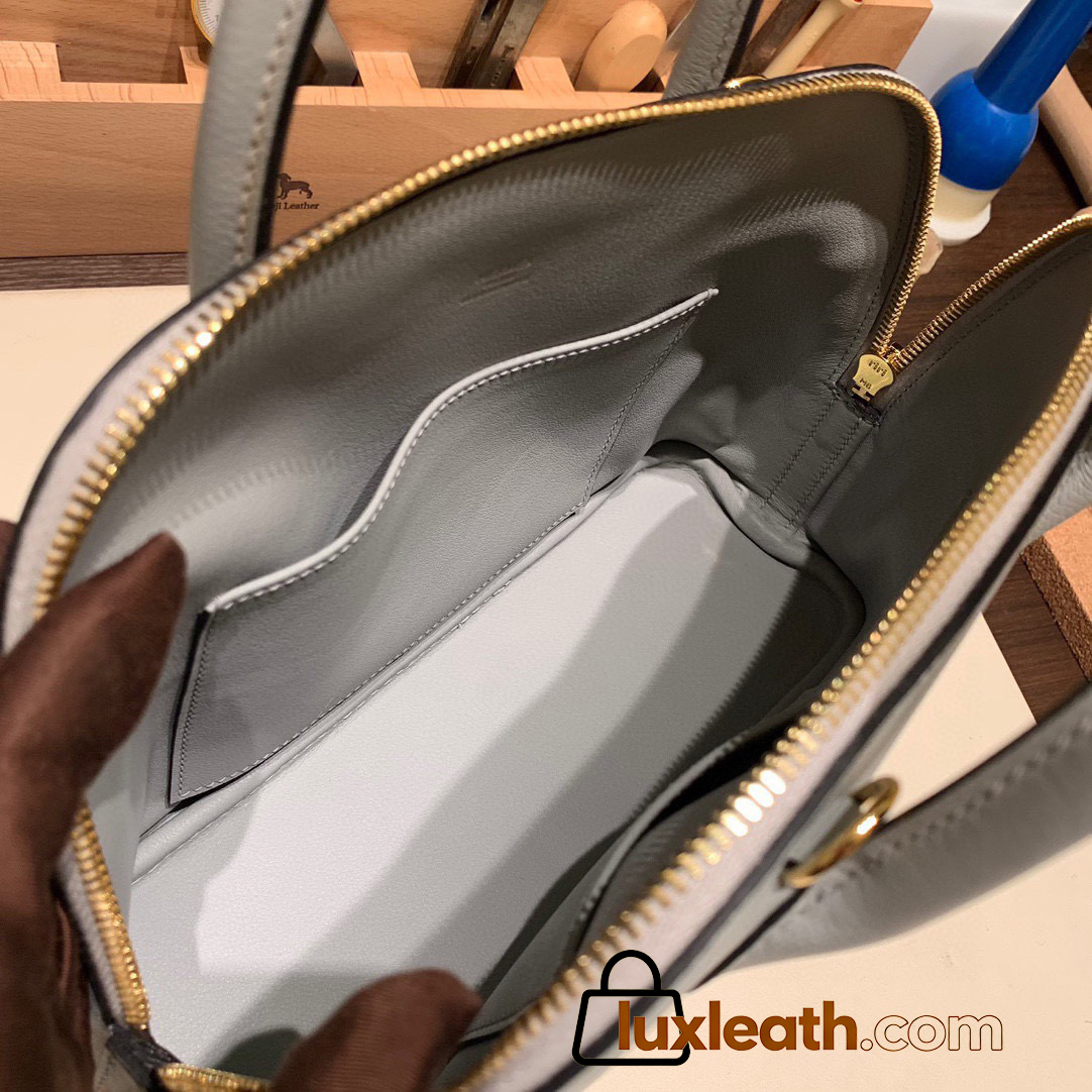 Hermes 25cm bolide evercolor 4Z /Gris Mouette Full Handmade Gold Hardware014