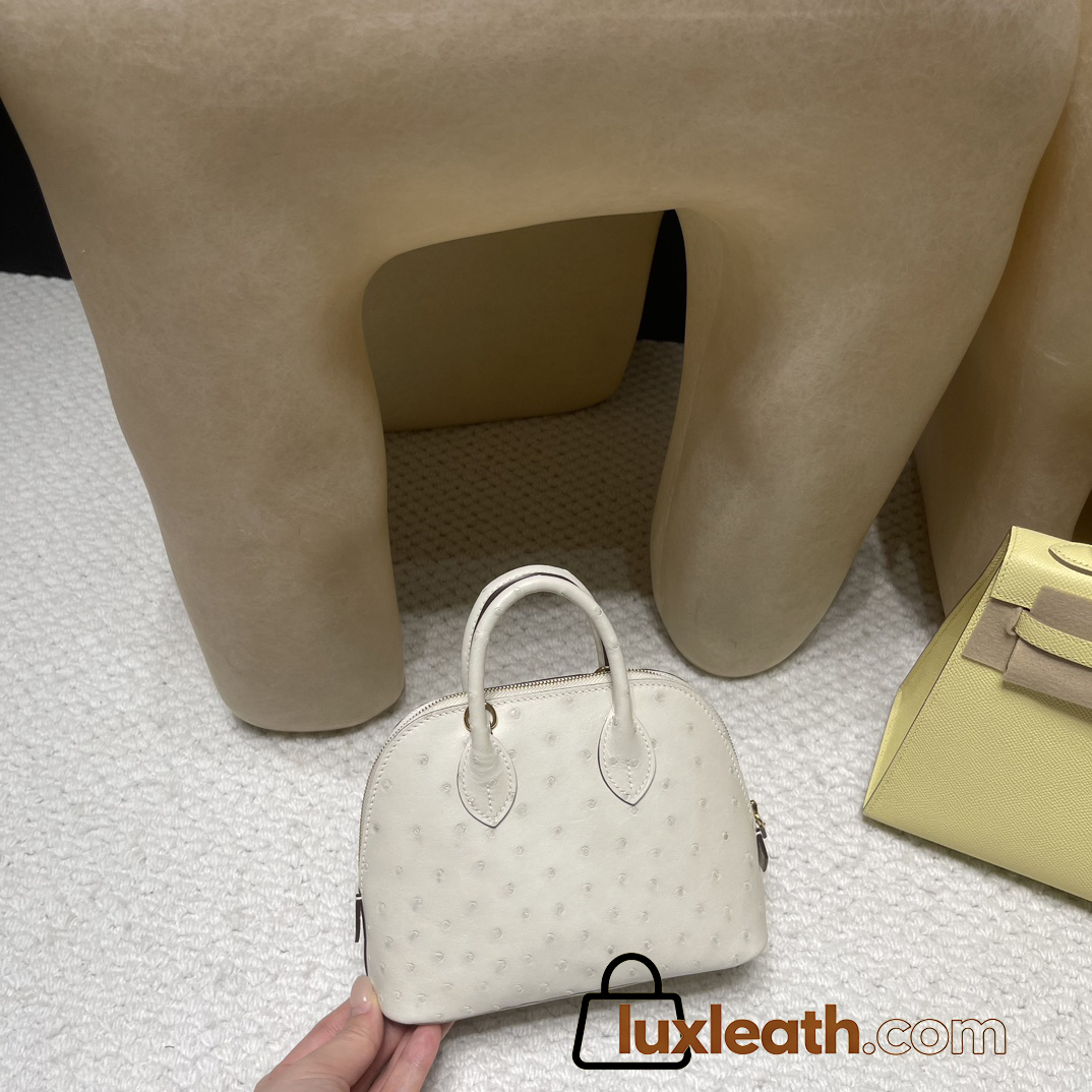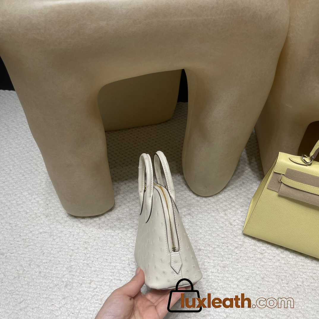 【NEW】Mini Bolide 18cm Ostrich 3C Parchemin Gold Hardware Full Hand-Stitching