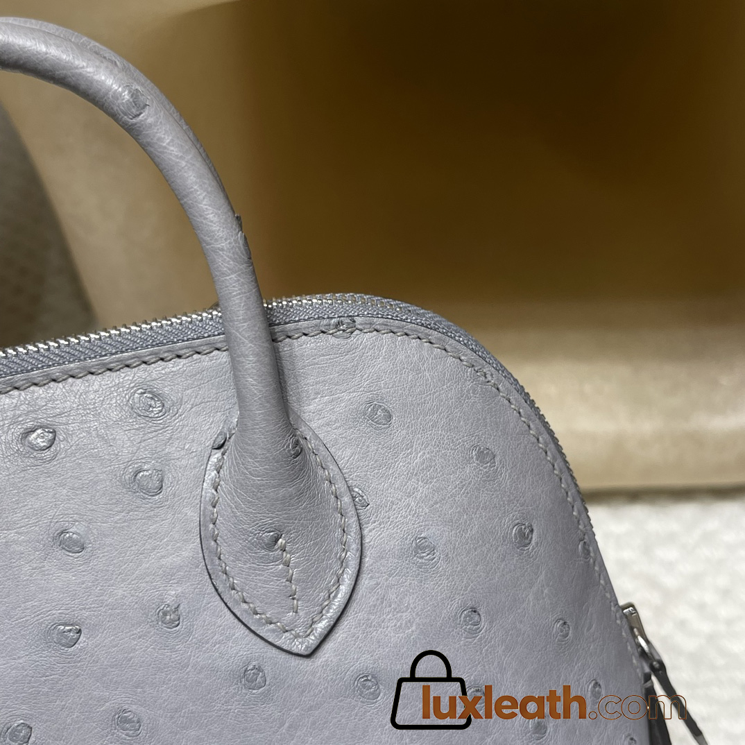 【NEW】Mini Bolide 18cm Ostrich 82 / Gris Agate  Gold Hardware Full Hand-Stitching