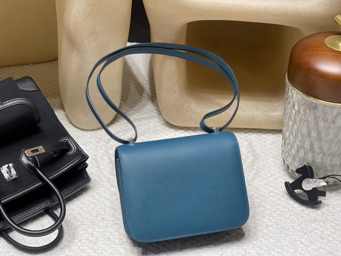 7P/Blue de Presse  & R2/Blue Agate   Silver Hardware Constance Mini Constance 19cm Epsom