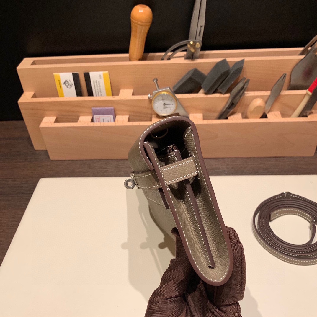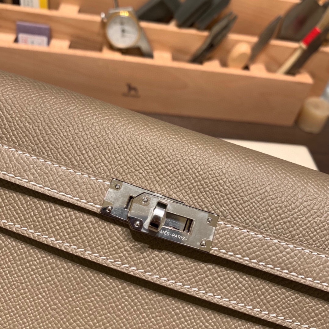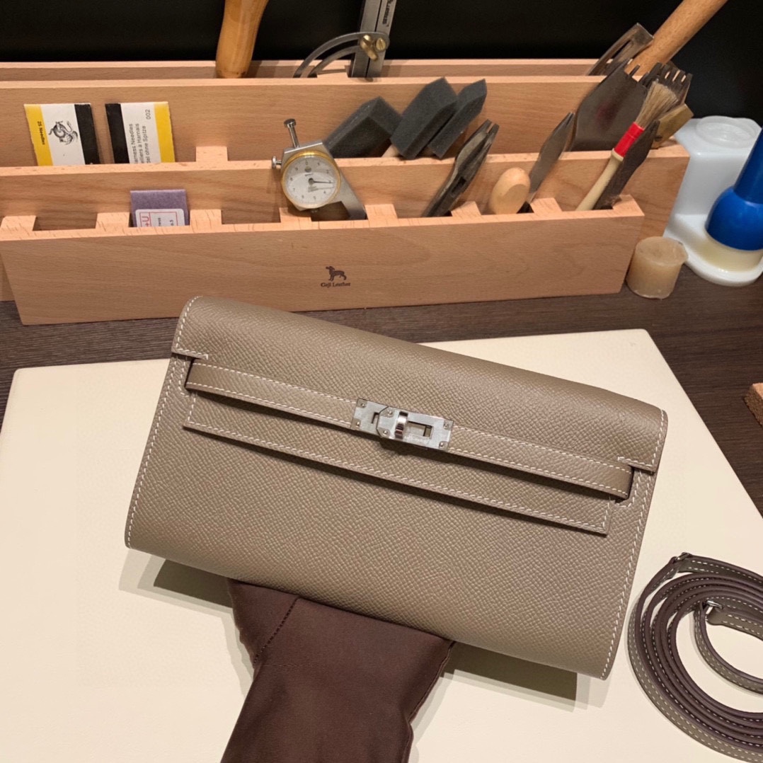 18/Étoupe Grey  Silver Hardware   Full Handmade Kelly Wallet Long To Go  epsom