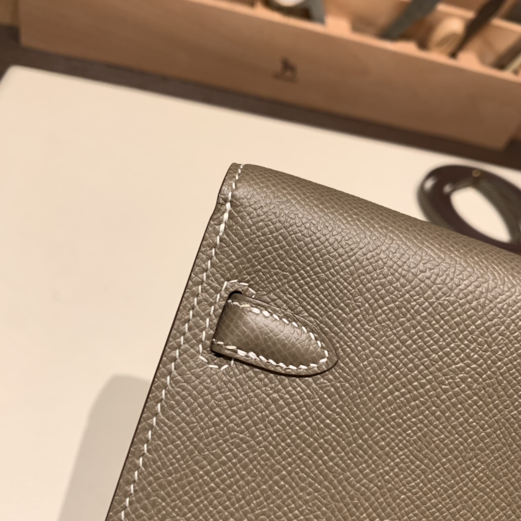 18/Étoupe Grey  Gold Hardware  Full Handmade Kelly Wallet Long To Go   epsom