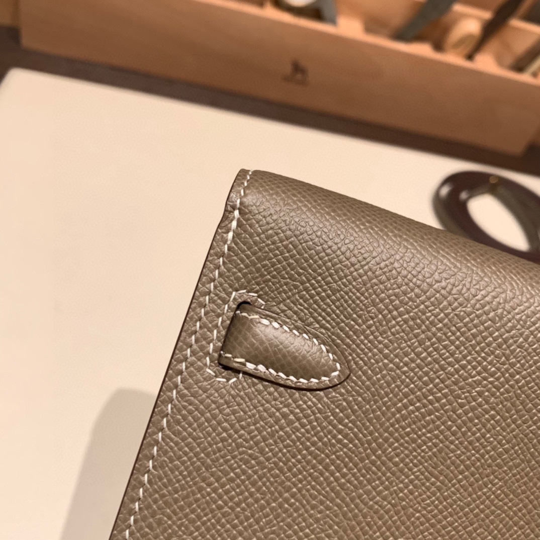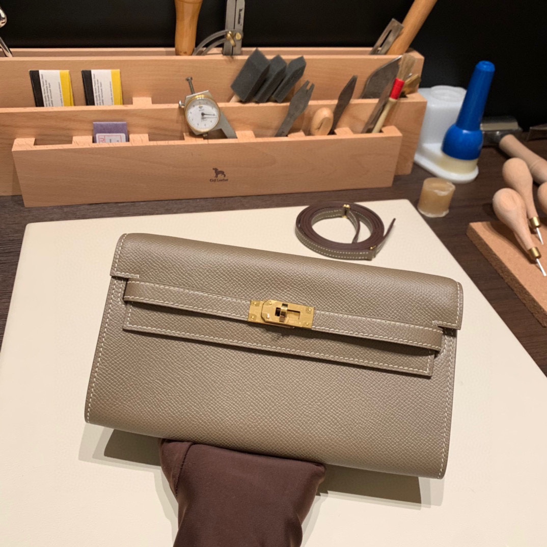 epsom 18/Étoupe Grey (Étoupe) Gold Hardware Full Handmade Kelly Wallet Long To Go epsom