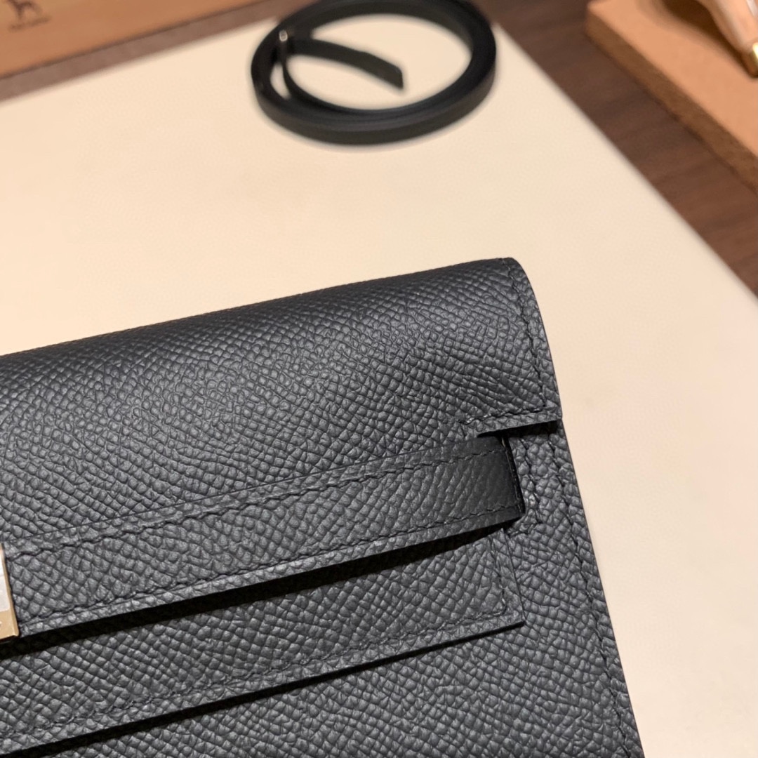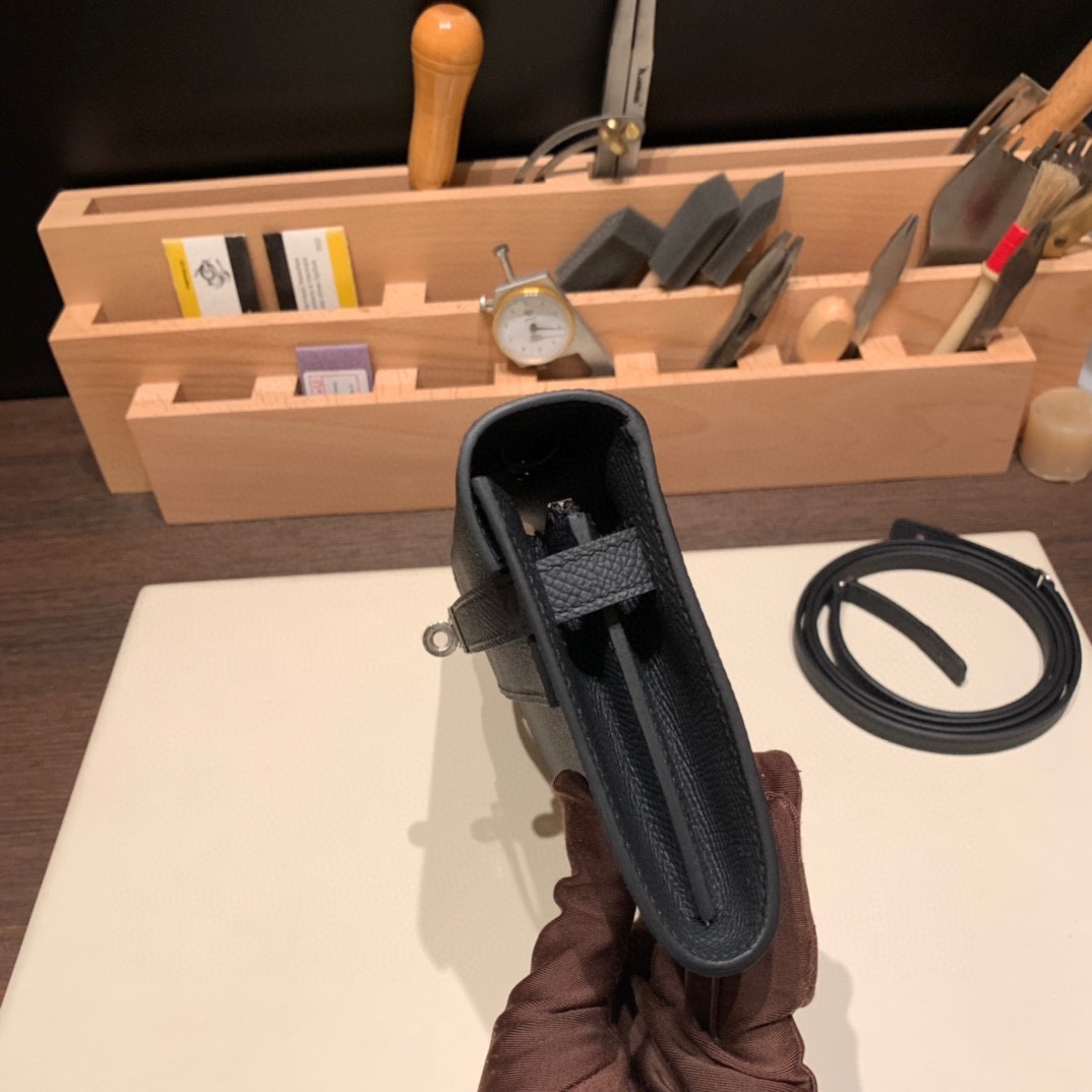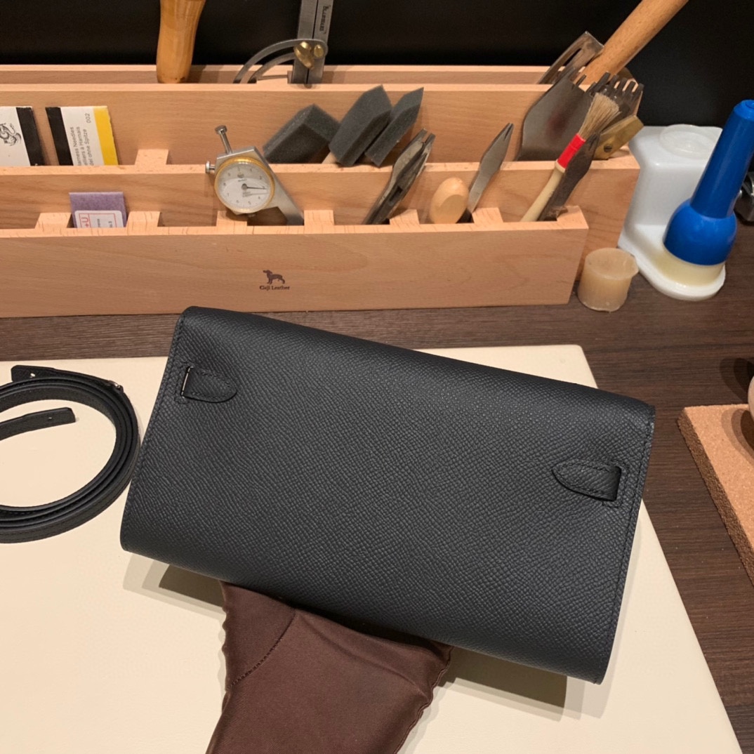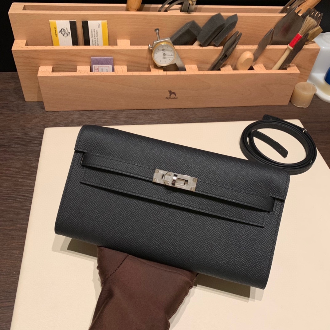 89/Black (Noir)  Silver Hardware  Full Handmade Kelly Wallet Long To Go   epsom