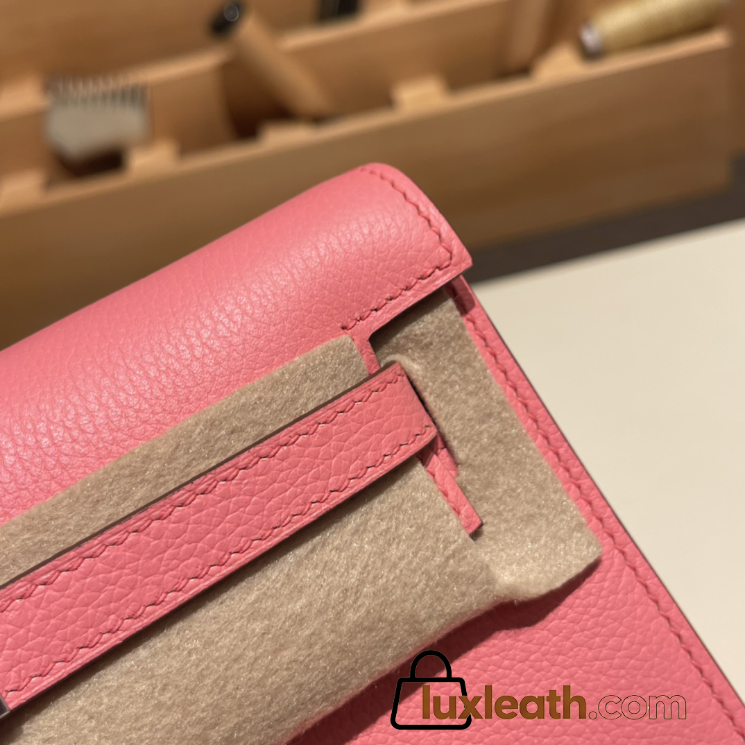 Hermes Kelly danse Evercolor 8W /Rose Azalee Silver Hardware