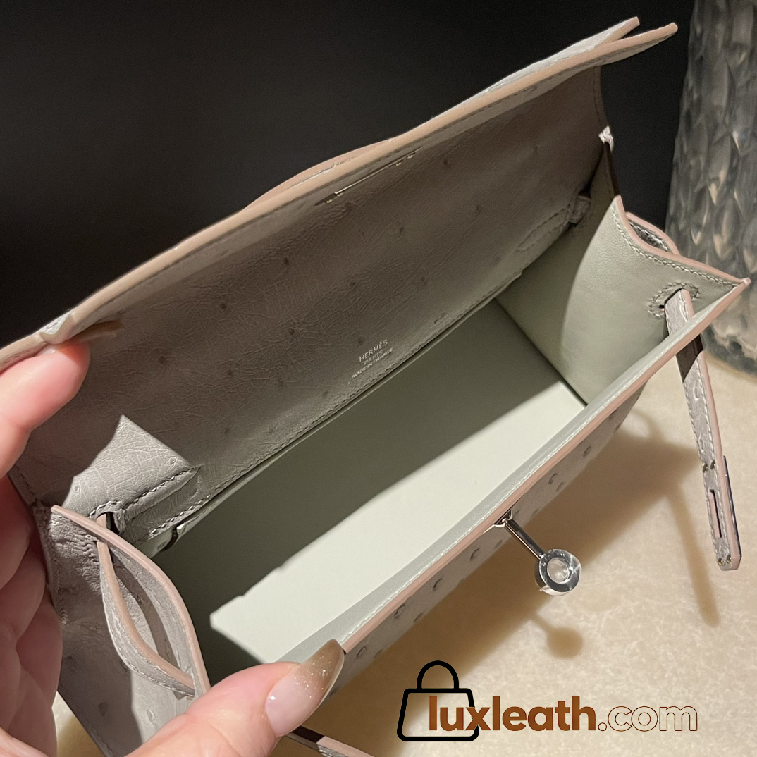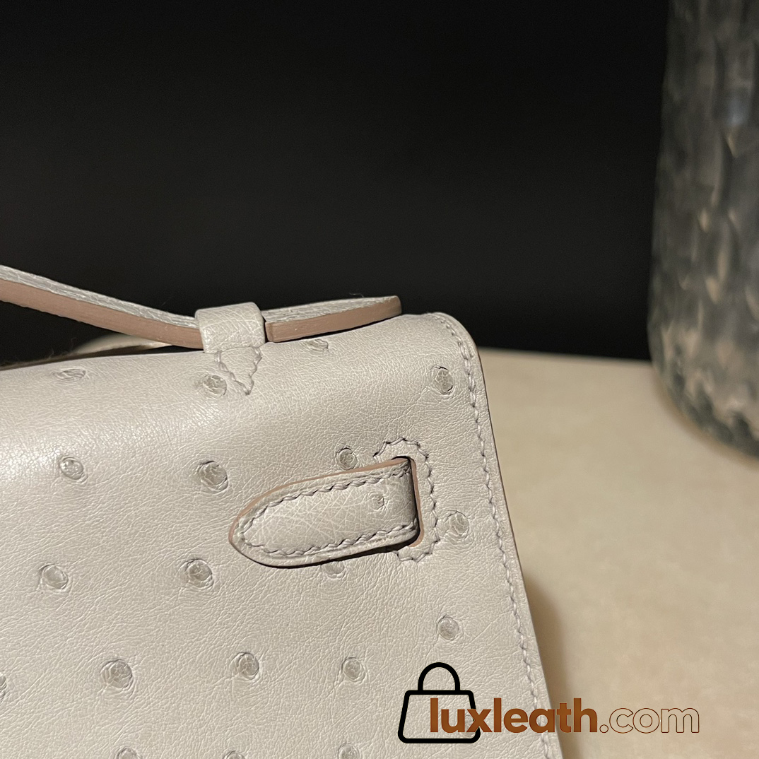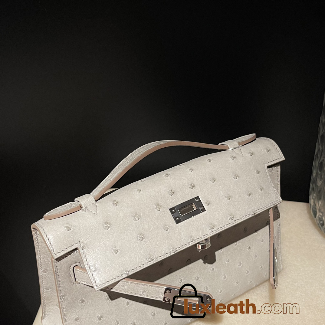 ostrich kelly pochette  80/Pearl Grey (Gris Perle)   ,