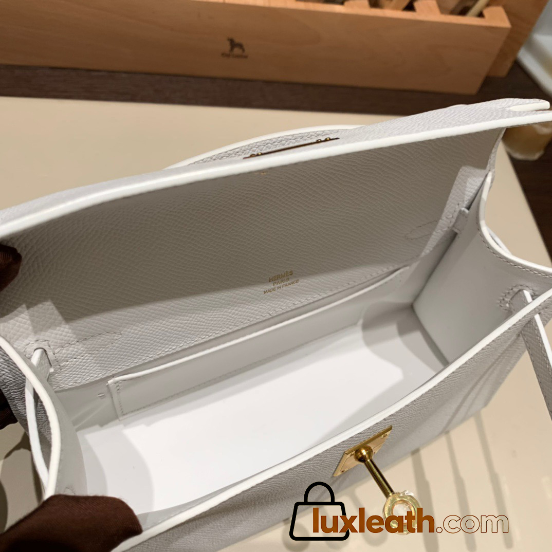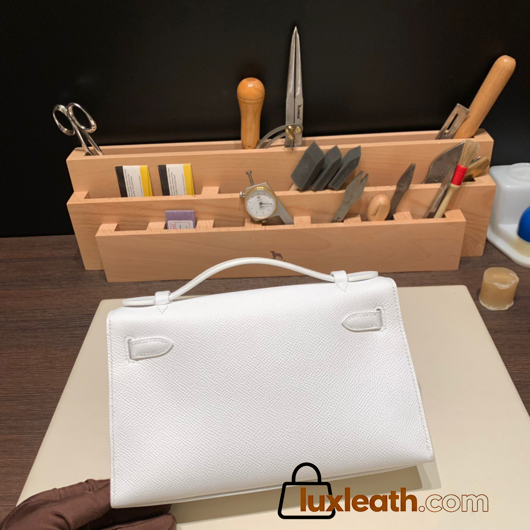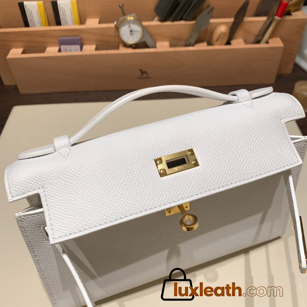 01 /White (Blanc) Gold Hardware  kelly pochette  Epsom