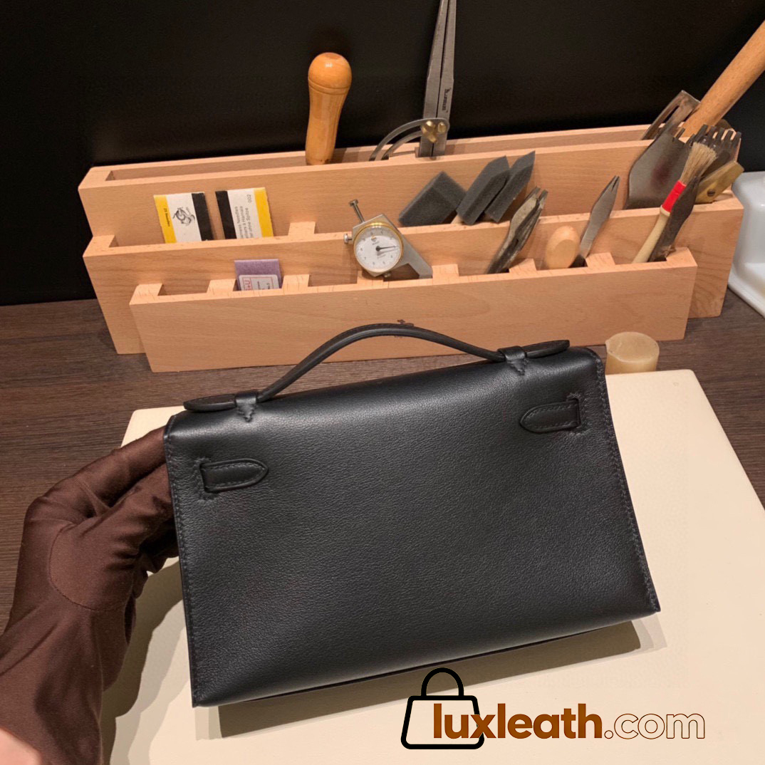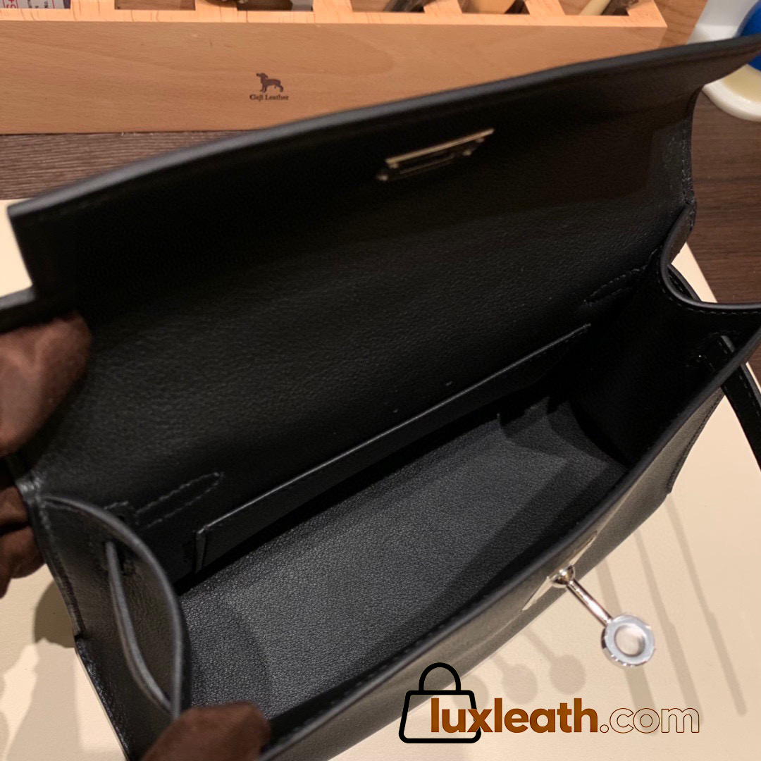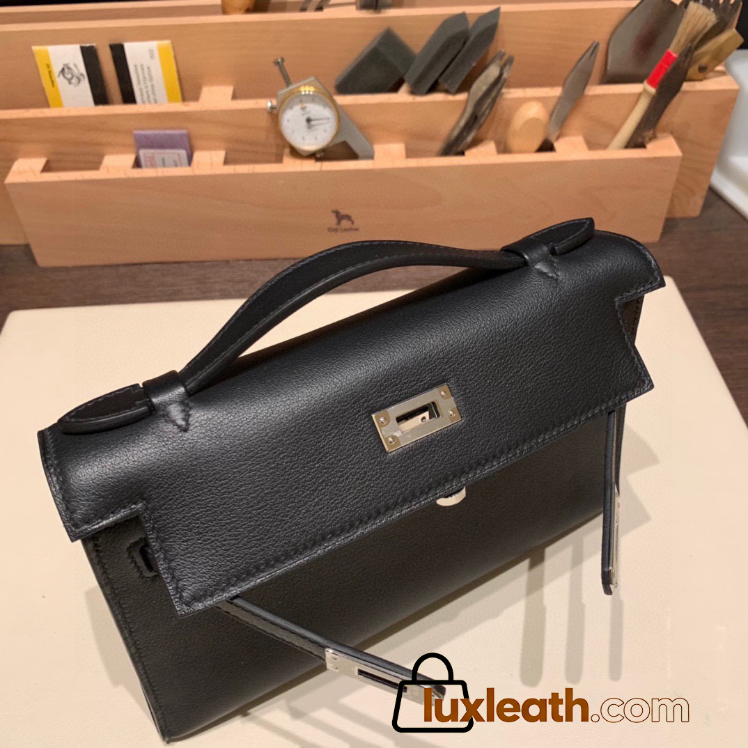 89 /Black (Noir) Silver Hardware kelly pochette  swift