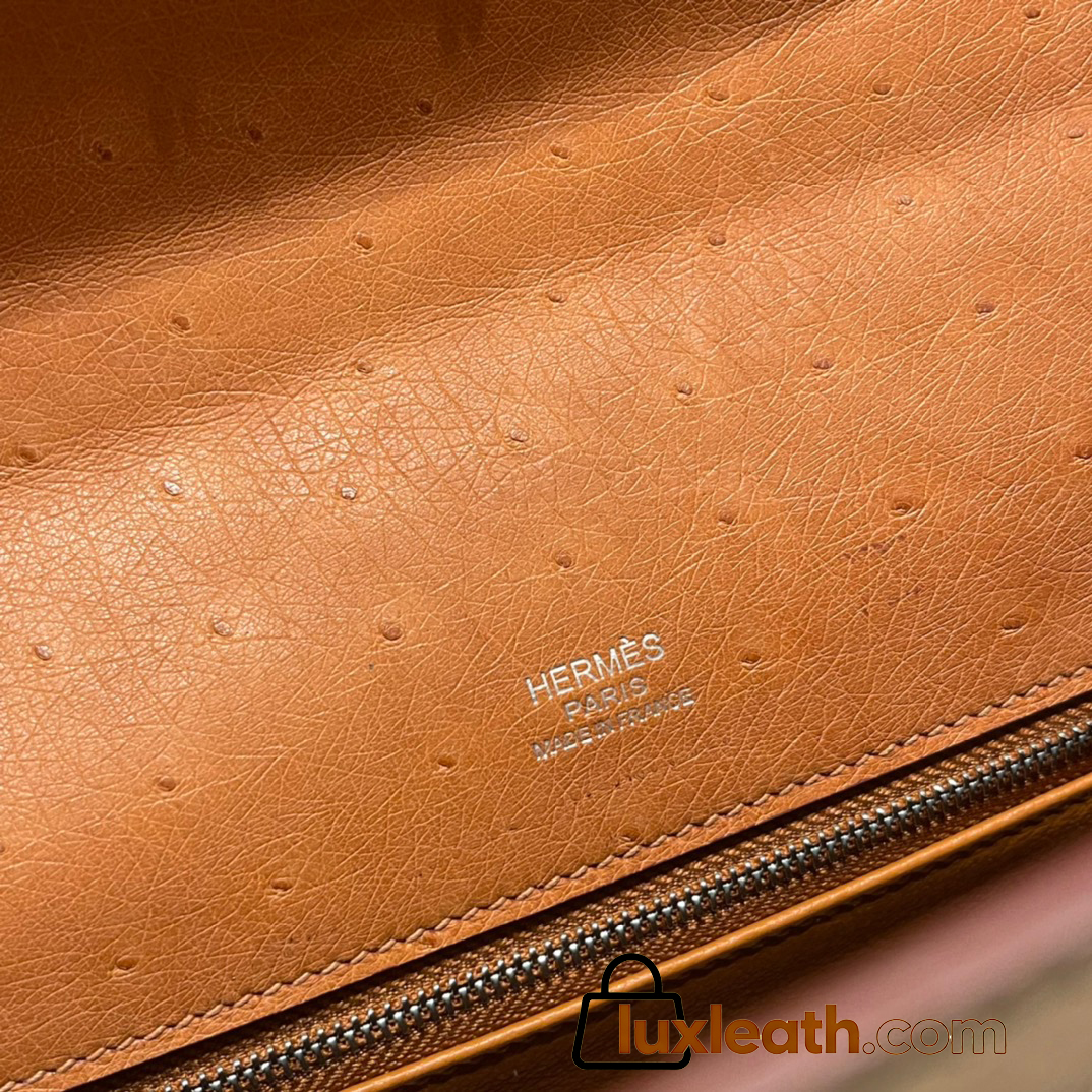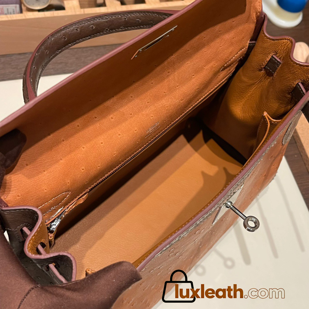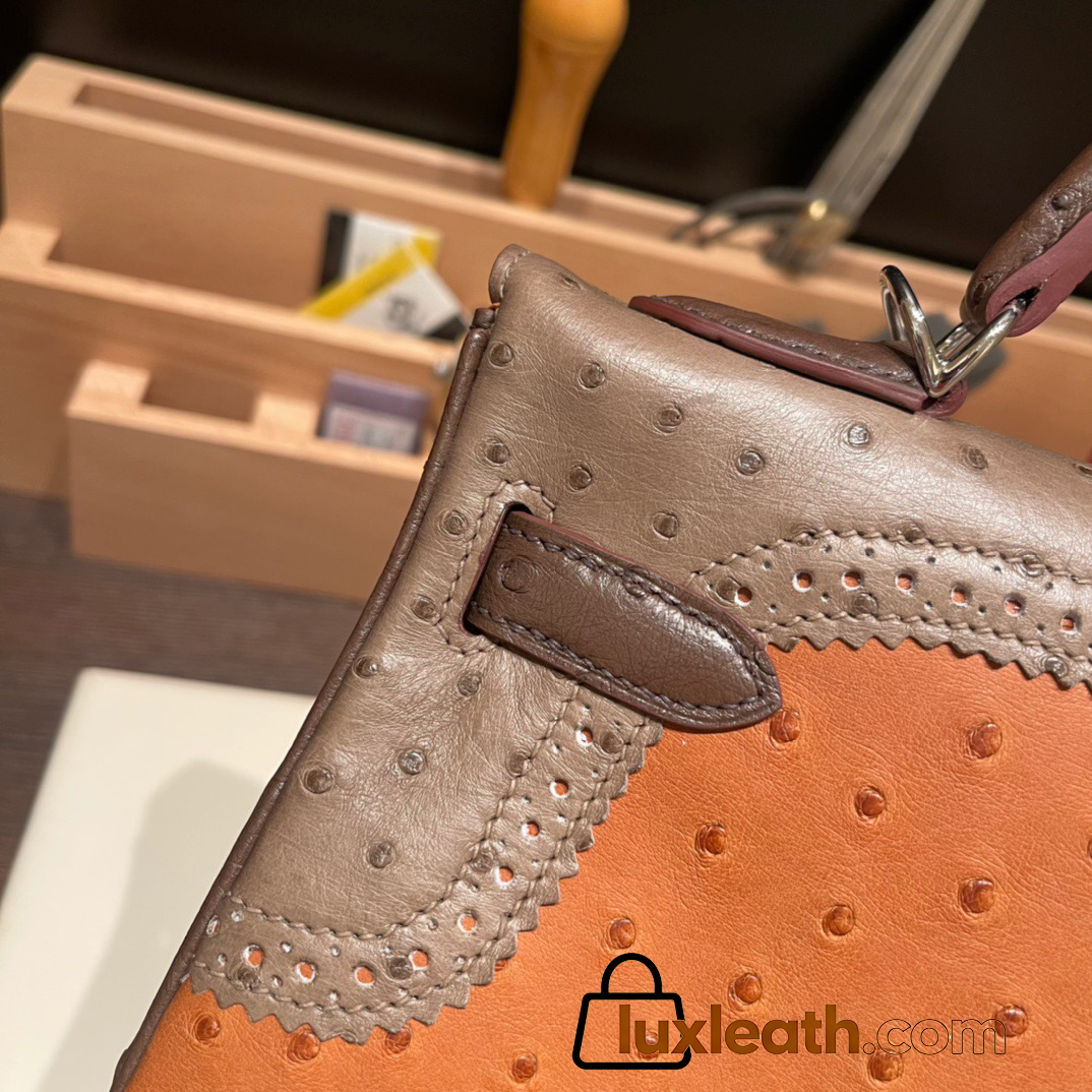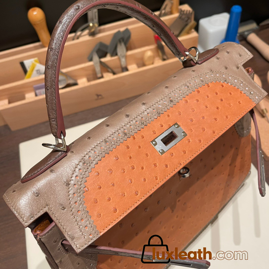 Hermes Kelly 32cm Ostrich Silver Hardware ck37 /Gold&18 /Étoupe Grey& 47 /Chocolat Full Handmade